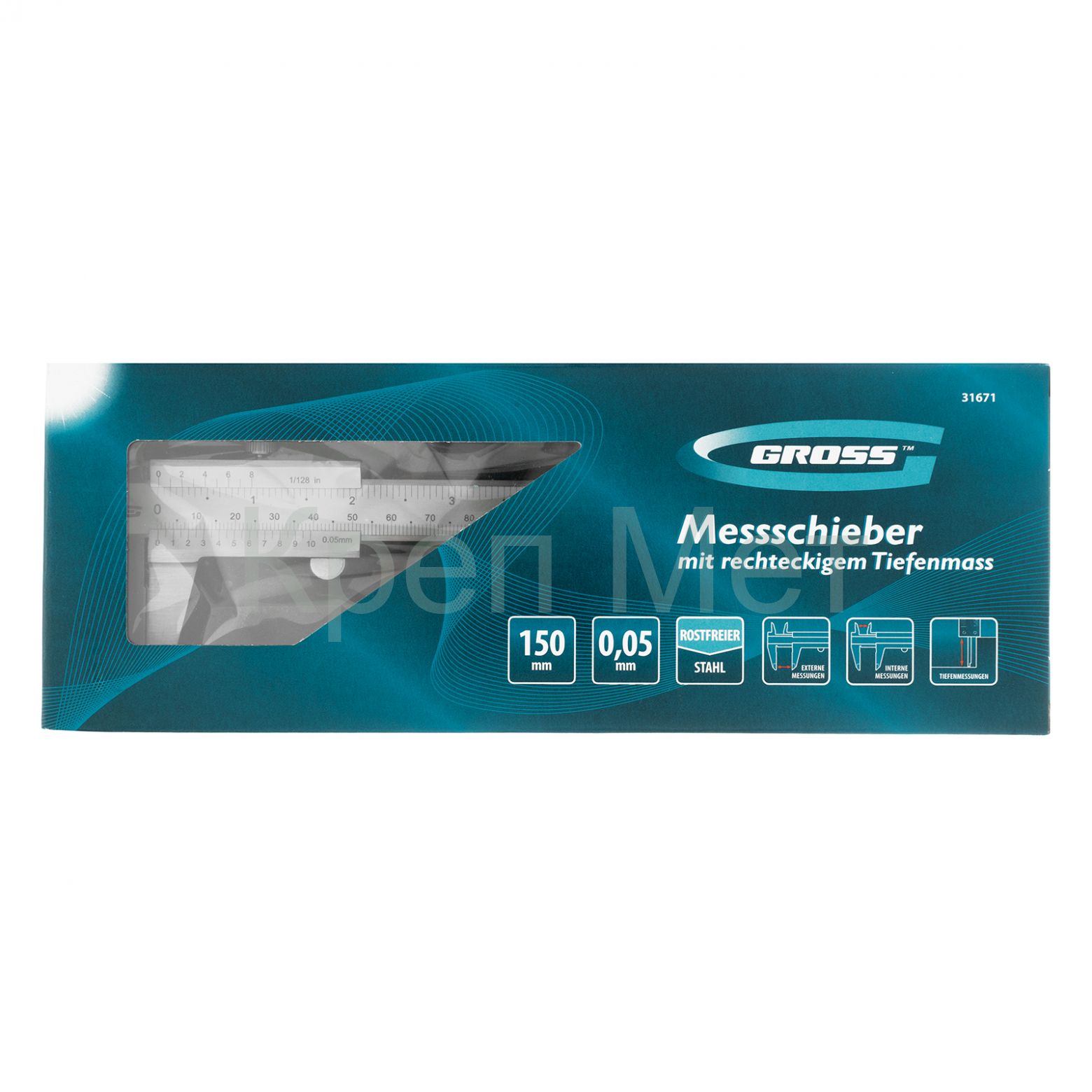 Штангенциркуль, 150 мм, 0.05 мм, нержавеющая сталь, с глубиномером Gross