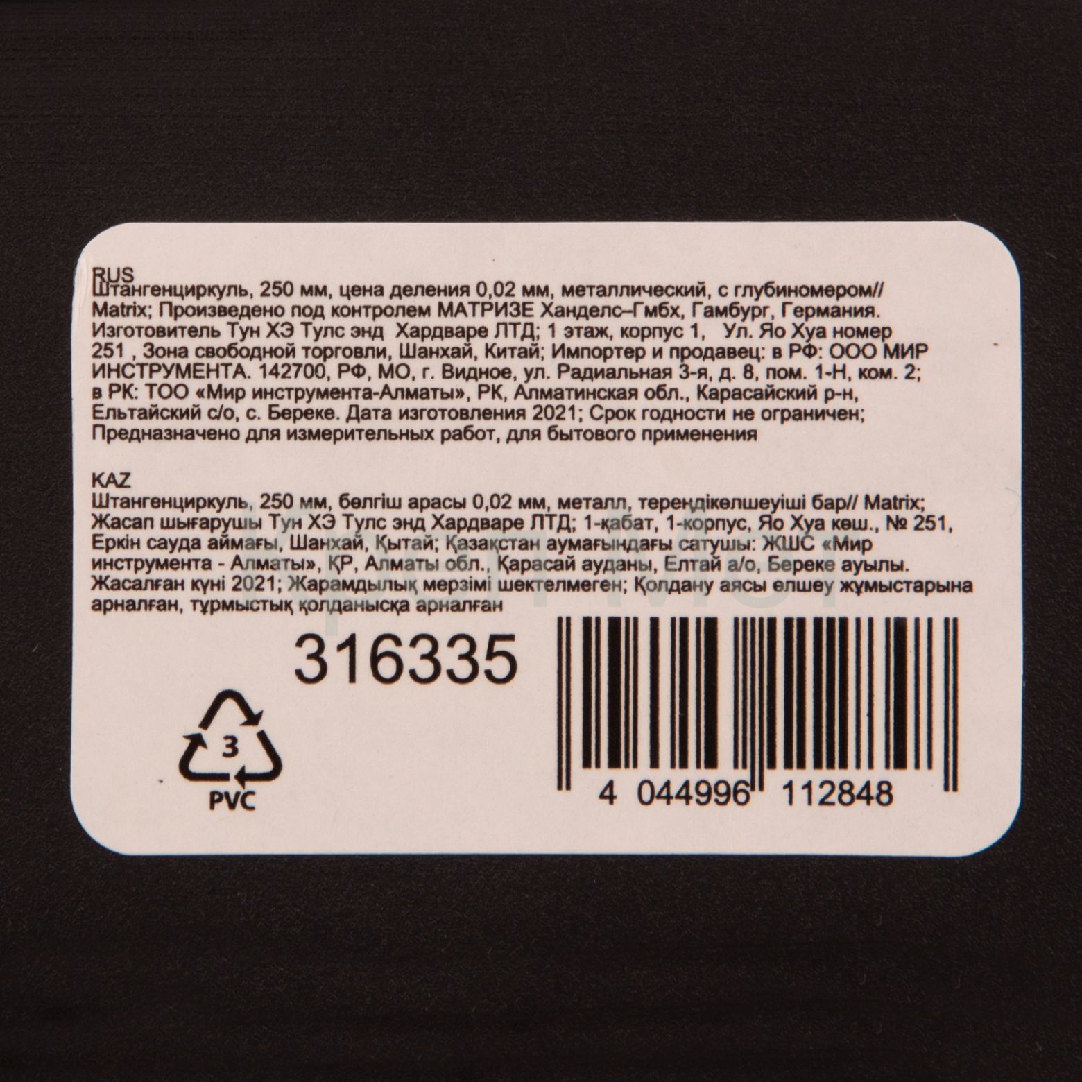 - Штангенциркуль, 250 мм, цена деления 0.02 мм, металлический, с глубиномером Matrix