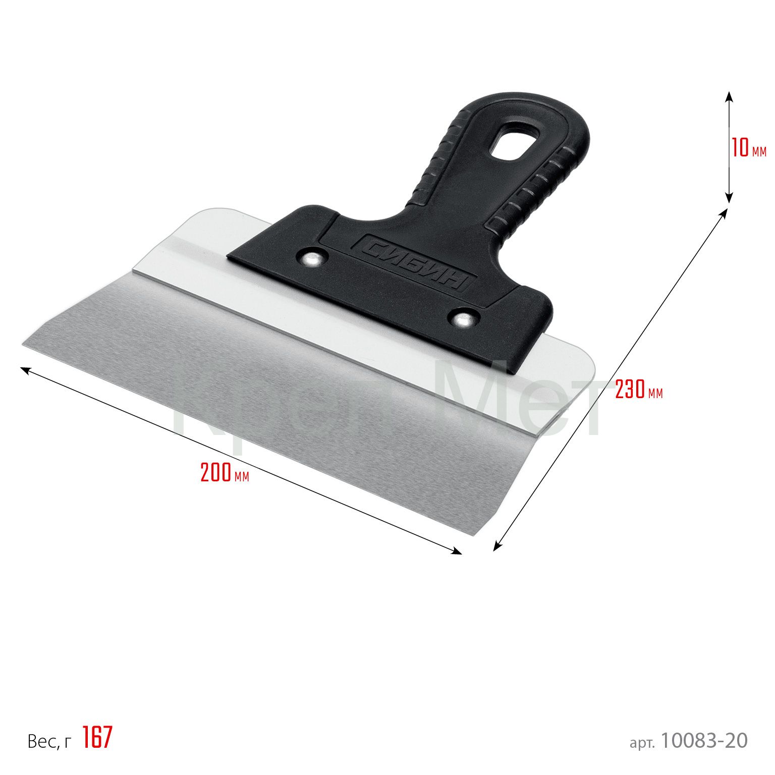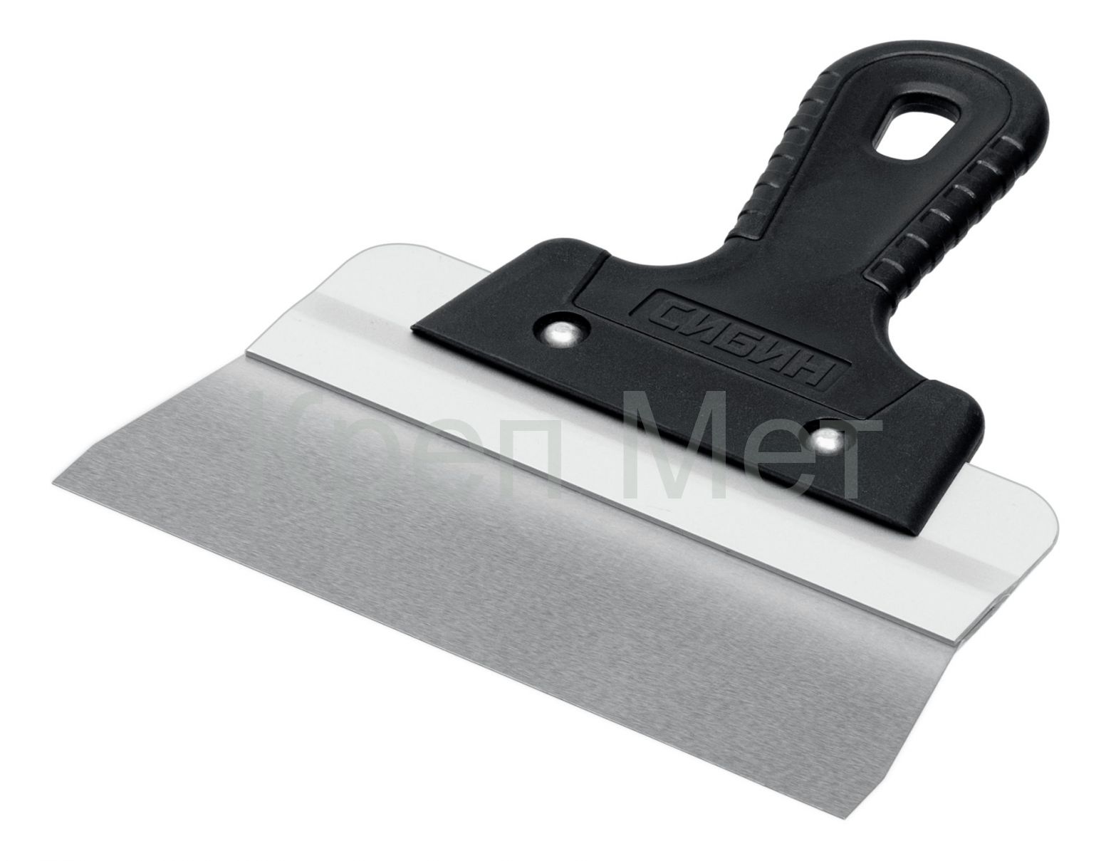 - СИБИН 200 мм, усиленный фасадный нержавеющий шпатель, алюминиевая направляющая, 1к ручка (10083-20)