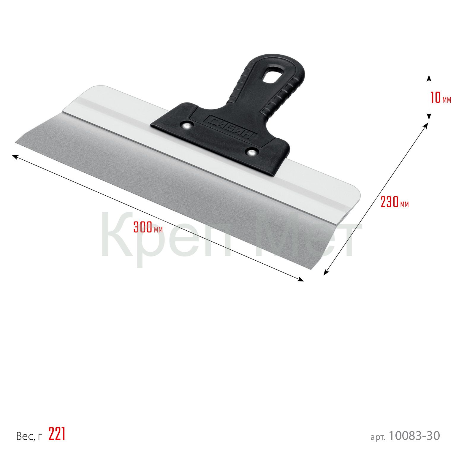 - СИБИН 300 мм, усиленный фасадный нержавеющий шпатель, алюминиевая направляющая, 1к ручка (10083-30)