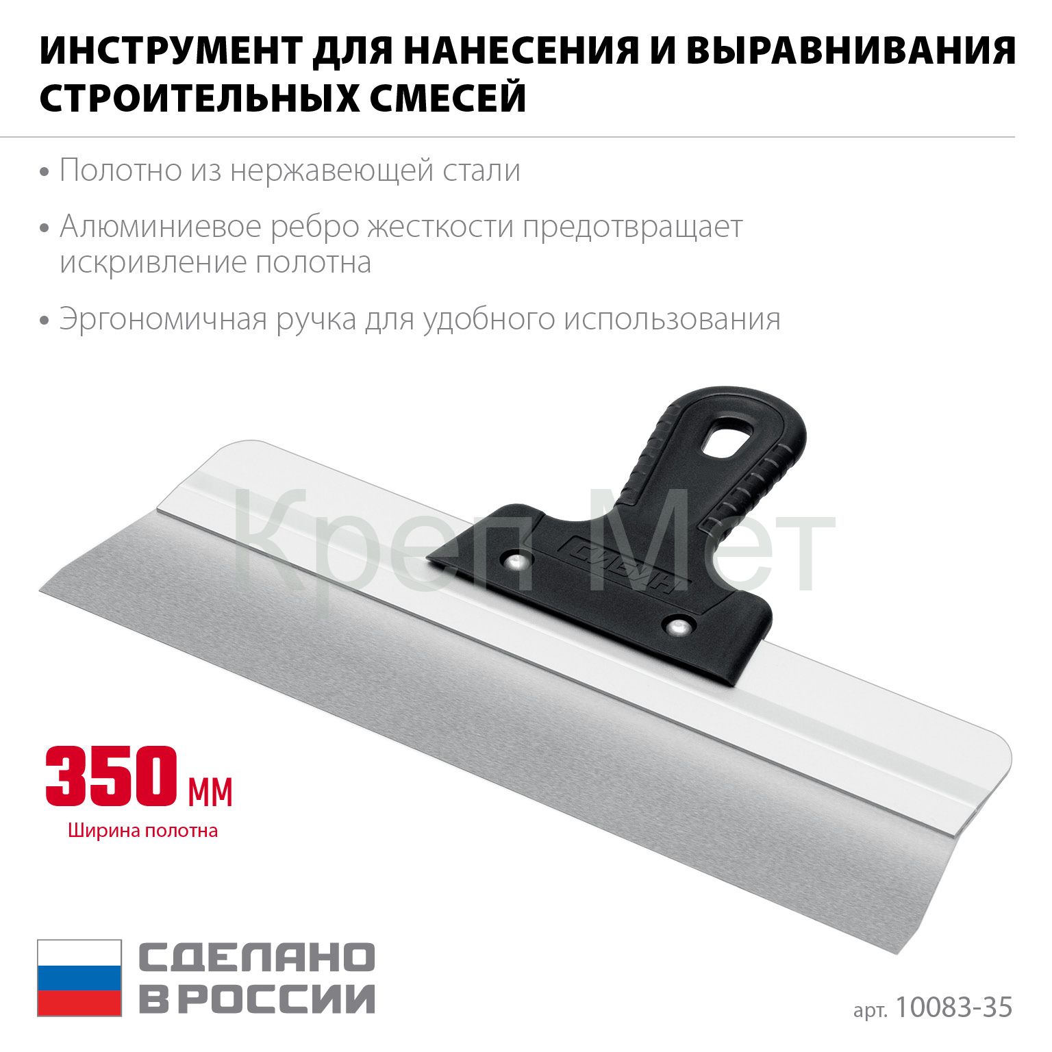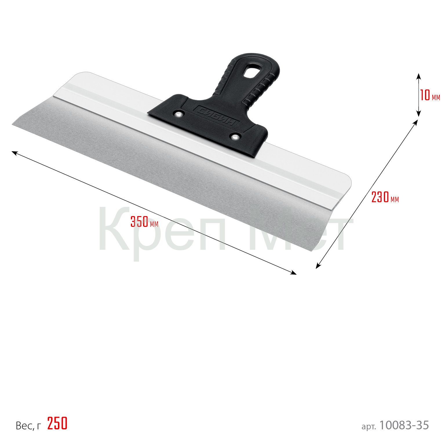 - СИБИН 350 мм, усиленный фасадный нержавеющий шпатель, алюминиевая направляющая, 1к ручка (10083-35)