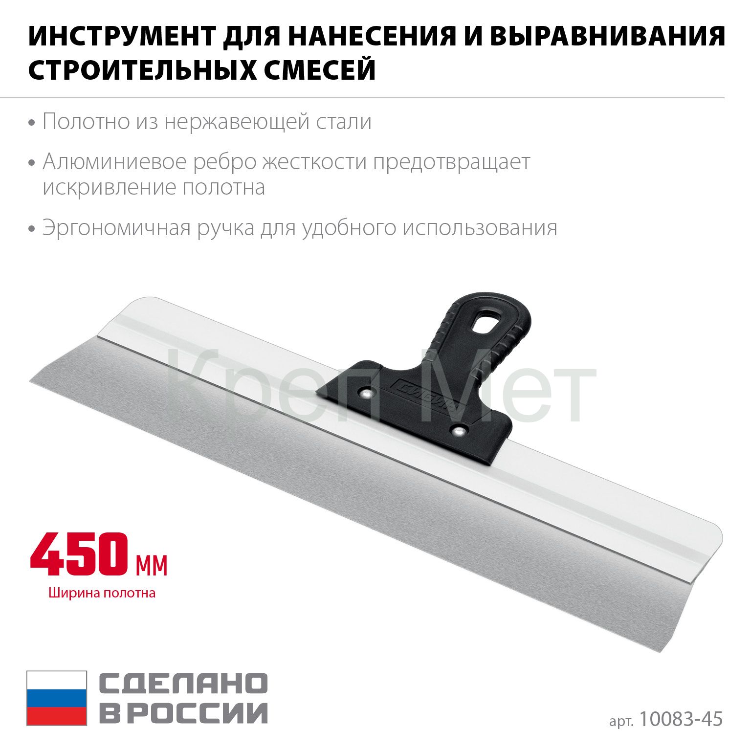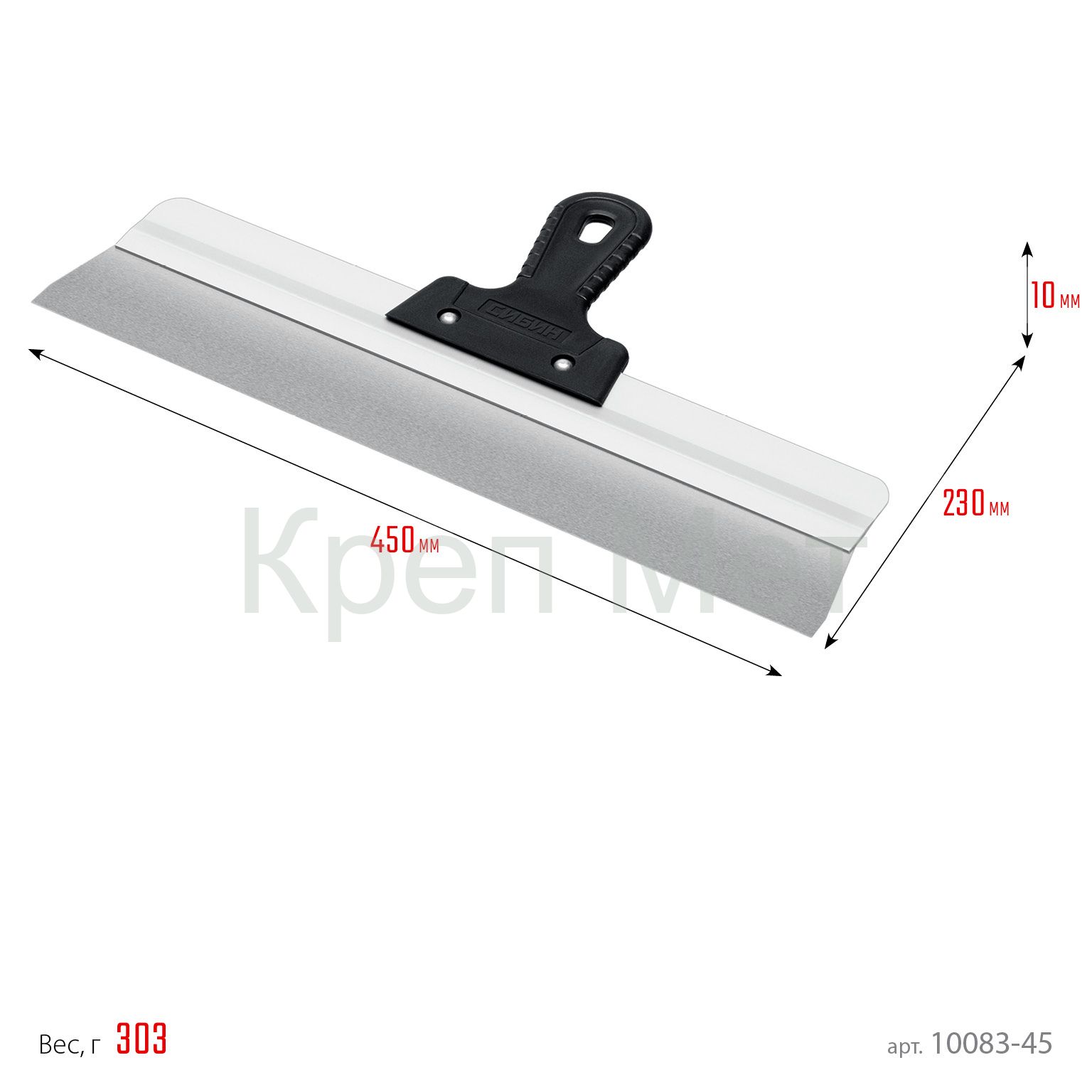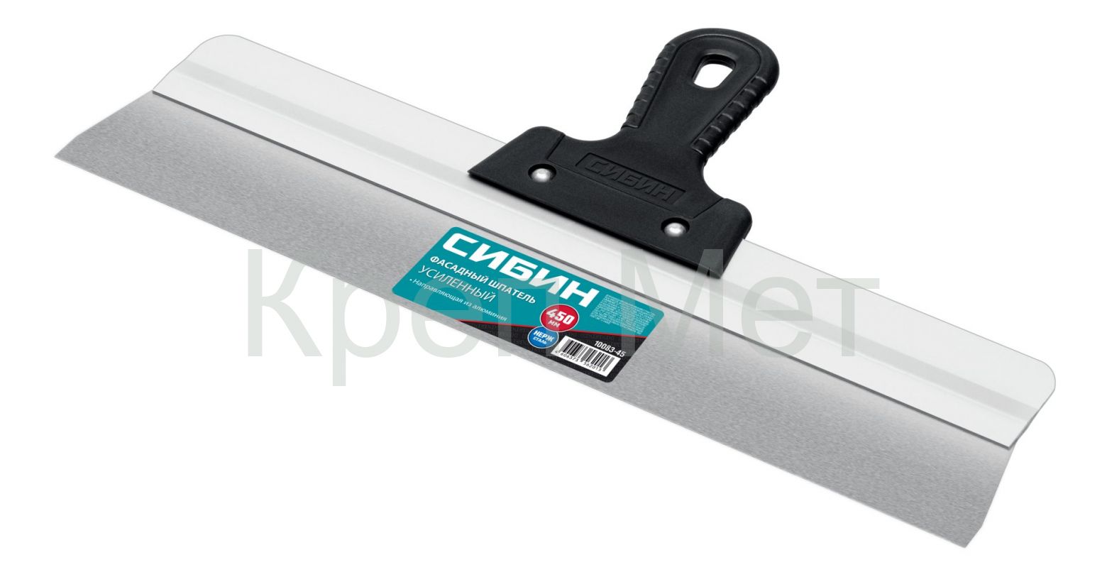 - СИБИН 450 мм, усиленный фасадный нержавеющий шпатель, алюминиевая направляющая, 1к ручка (10083-45)