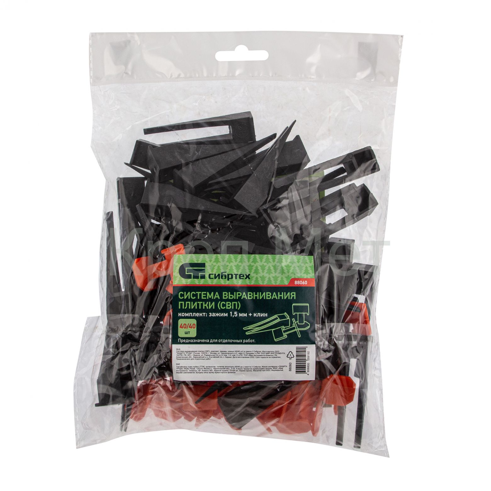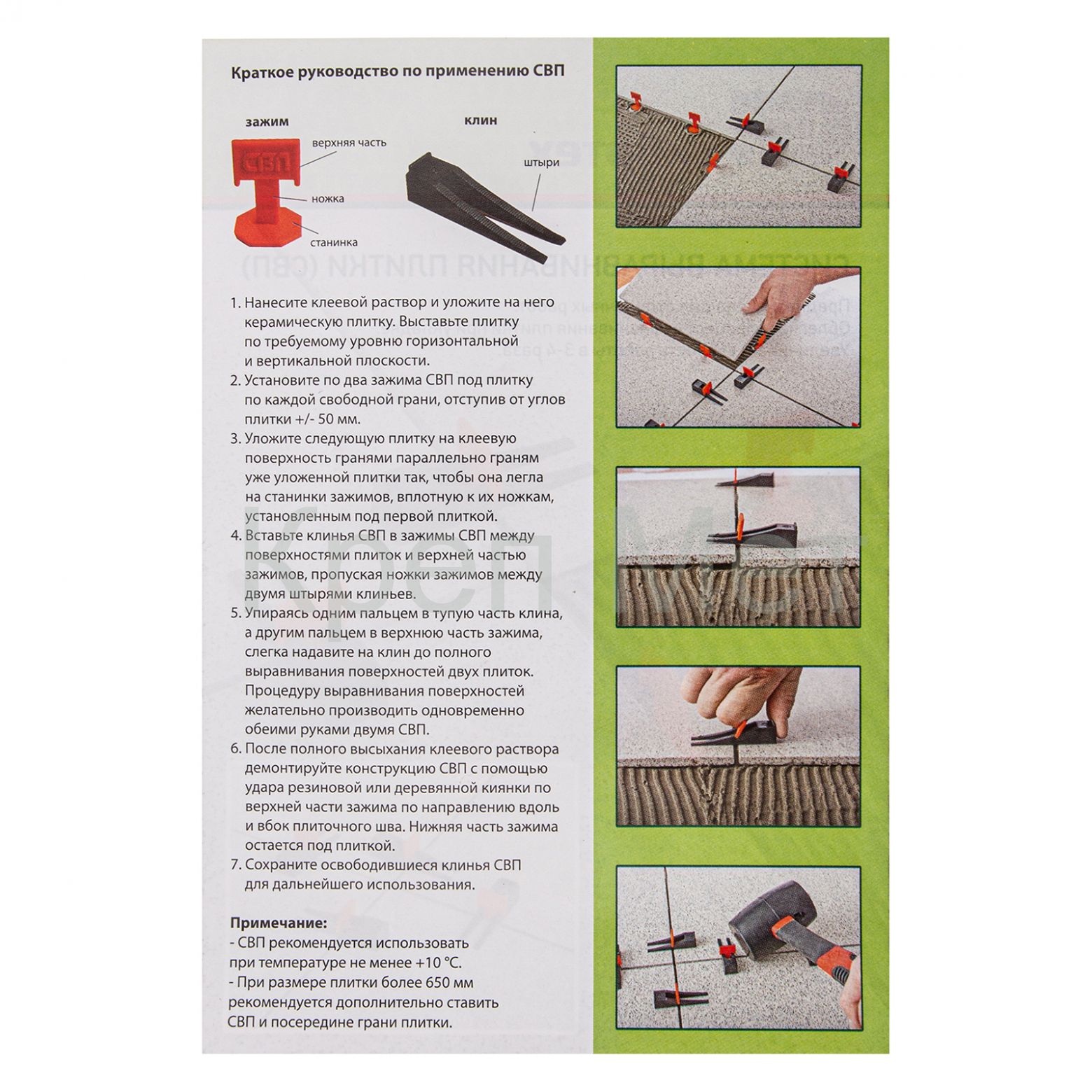 - Система выравнивания плитки (СВП) комплект: зажимы, клинья (40/40 шт) в пакете Сибртех