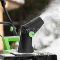 - Эффективная работа — в зависимости от размера территории можно установить дальность выброса снега до 6 м, а также отрегулировать угол поворота выпускного желоба в пределах 180°.