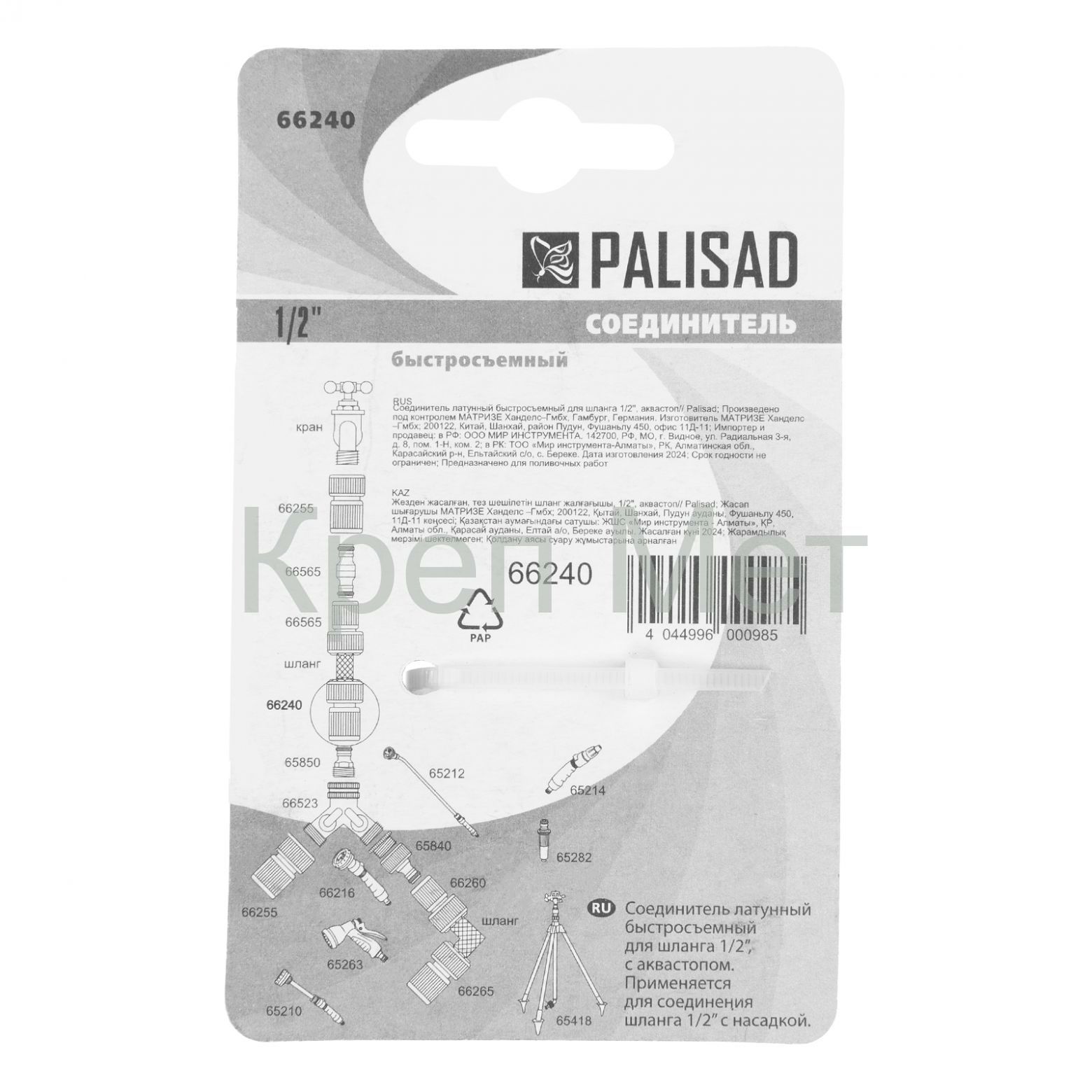Соединитель латунный, быстросъемный для шланга 1/2, аквастоп Palisad