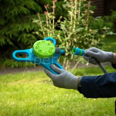 - Клапан «аквастоп» — в момент отсоединения распылителя подача воды блокируется, что позволяет быстро и многократно менять насадки.
