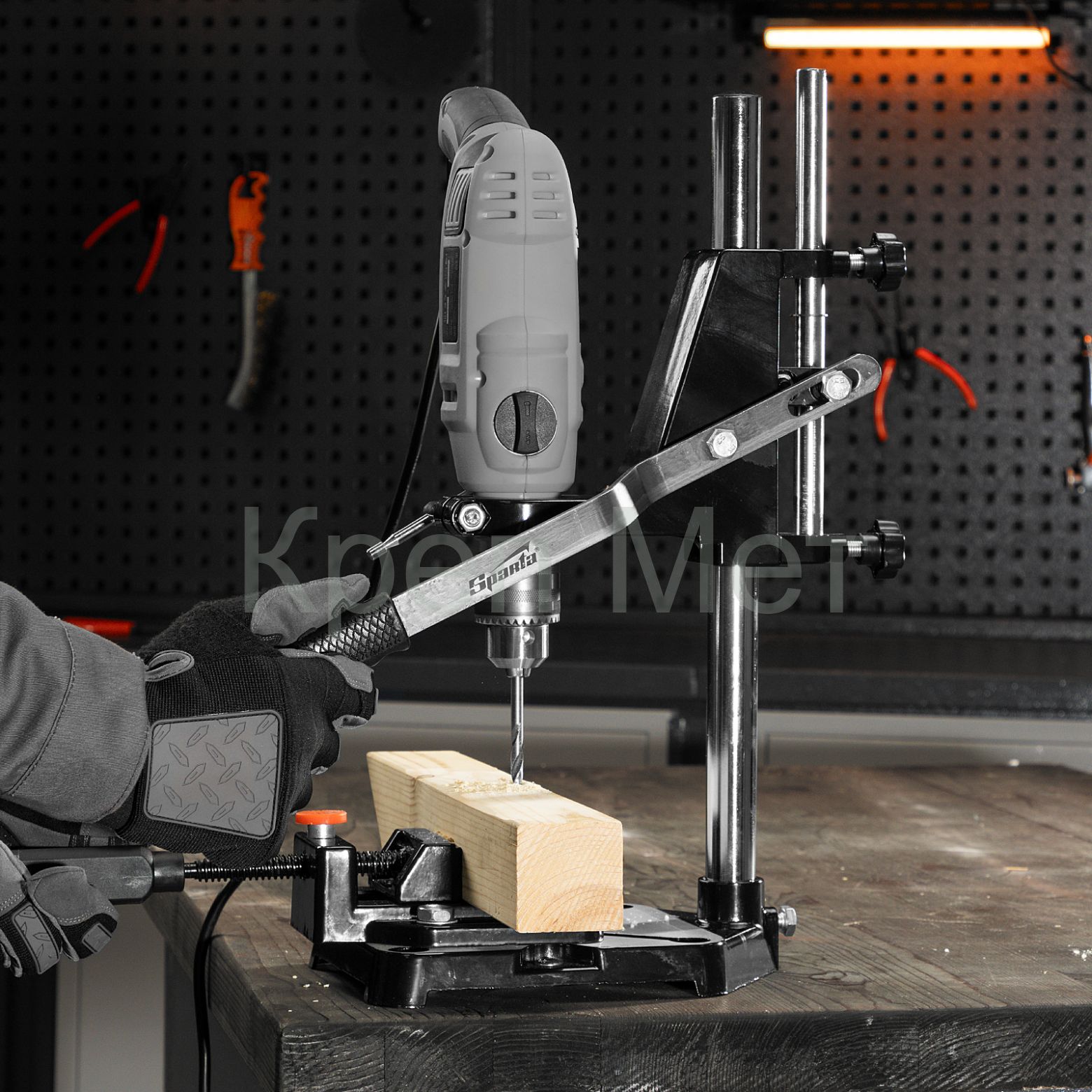 - Регулировка по высоте — можно работать с заготовками разного размера и менять глубину сверления.