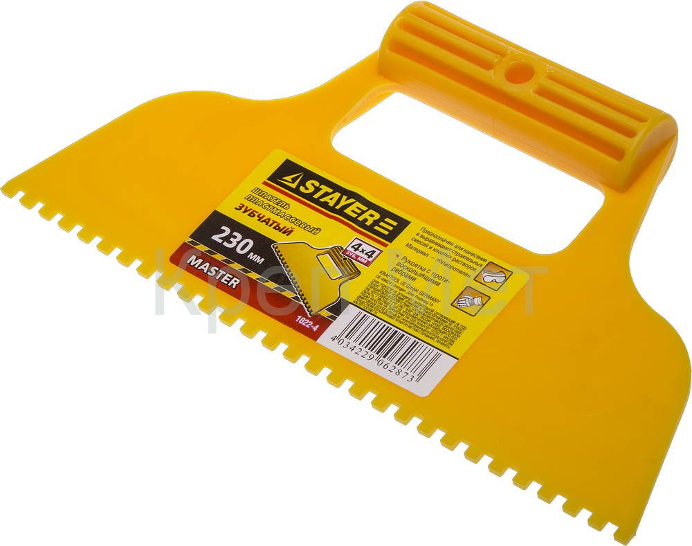 STAYER 230 мм, зубчатый 4 х 4 мм, пластмассовый, малярный шпатель (1022-4)