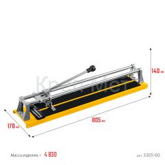 - Плиткорез оснащен сменным твердосплавным режущим элементом, . Металлические направляющие обеспечивают точный и плавный разрез керамической плитки. Усиленная платформа и опоры позволяют проводить работы с керамической плиткой повышенной толщины и увеличивают срок службы плиткореза. Размеры и толщина керамической плитки указаны на упаковке.