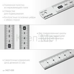 STAYER длина 0.2 м, нержавеющая линейка, Professional (3427-020)