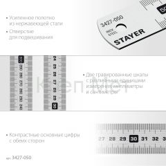 STAYER длина 0.5 м, нержавеющая линейка, Professional (3427-050)