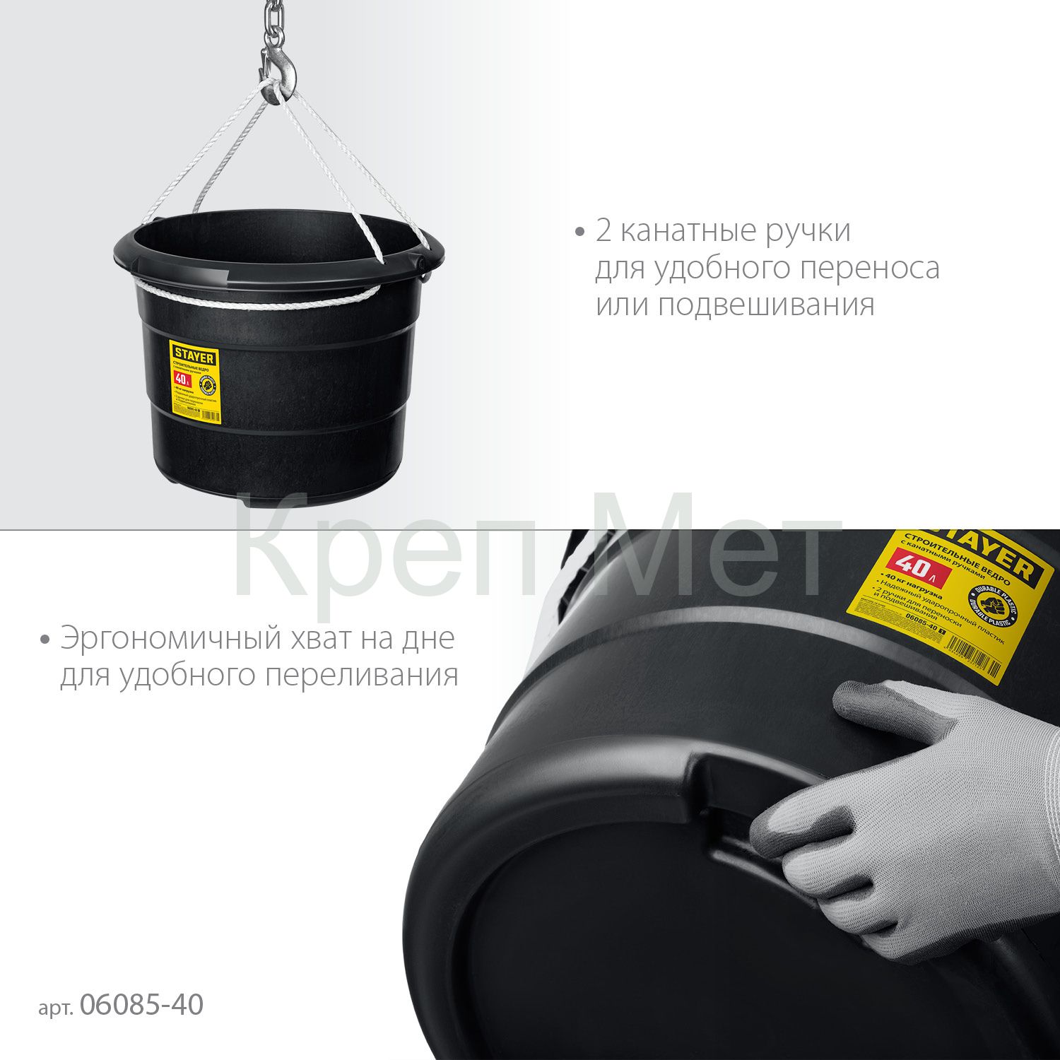 - STAYER STRONG, 40 л, с канатными ручками, строительное пластиковое ведро (06085-40)