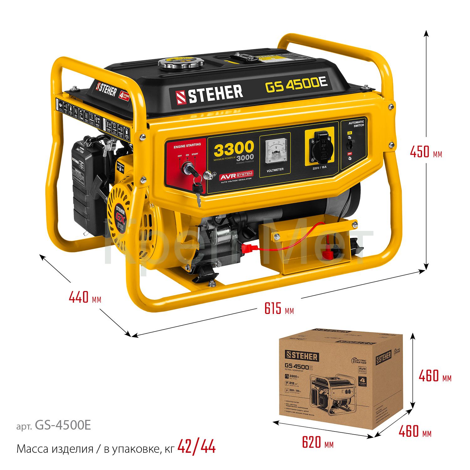 - STEHER 3300 Вт, бензиновый генератор с электростартером (GS-4500E)