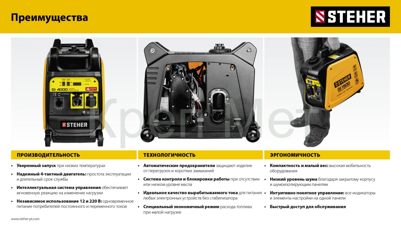 - STEHER 3500 Вт, инверторный генератор (GI-4000)