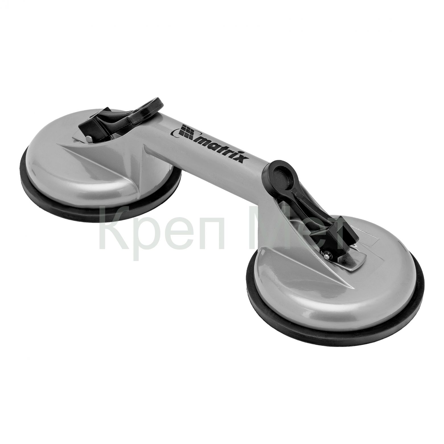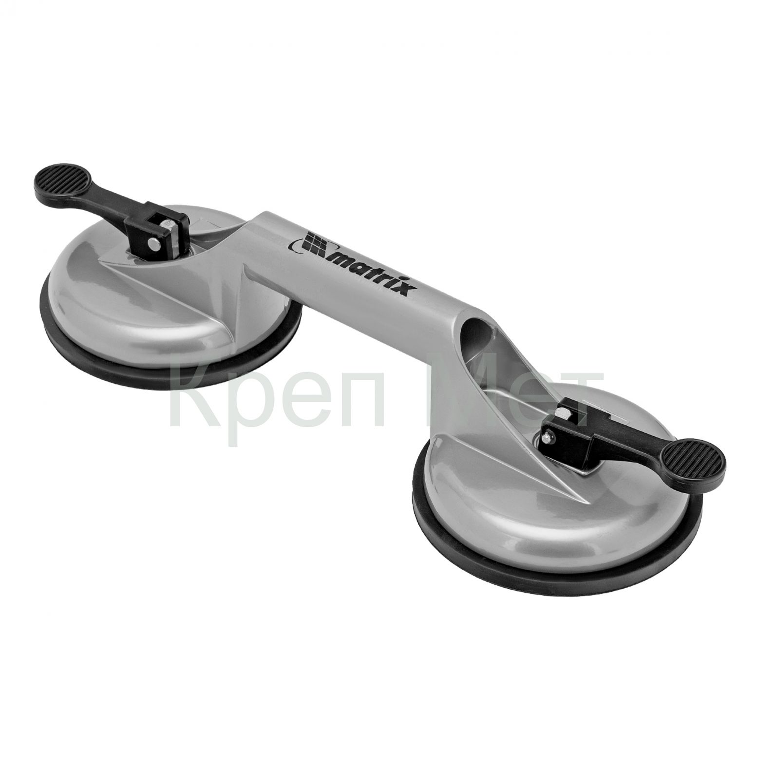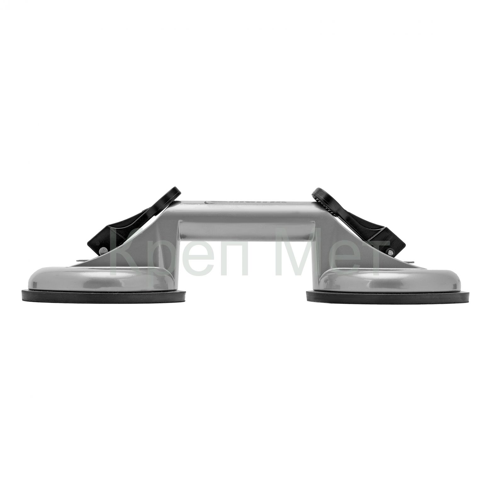 Алюминиевый двойной стеклодомкрат Matrix 875205 позволяет поднимать, переносить и устанавливать стекла, зеркала, плитку, листовой металл и другие гладкие материалы. Имеет две вакуумные присоски, которые бережно и надежно фиксируются на поверхности при помощи зажимов. Стеклодомкрат позволяет длительное время удерживать груз весом до 80 кг. Будет полезен во время строительства, ремонта, а также пригодится в быту.