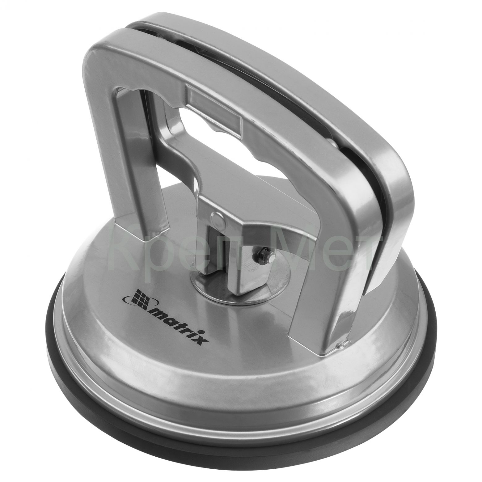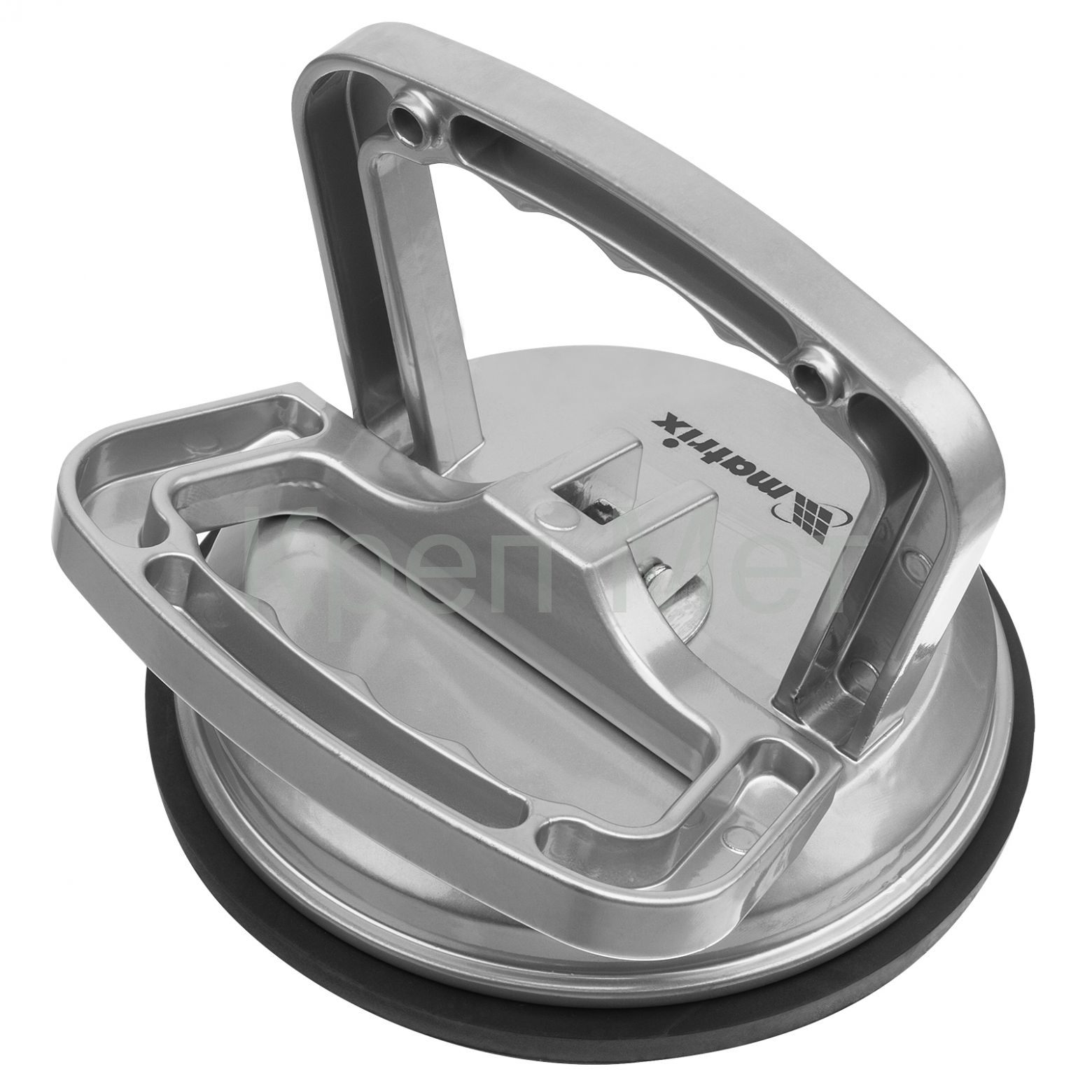 Алюминиевый одинарный стеклодомкрат Matrix 875204 позволяет поднимать, переносить и устанавливать стекла, зеркала, плитку, листовой металл и другие гладкие материалы. Двойная рукоятка складывается и надежно фиксирует присоску на поверхности, не повреждая ее. Стеклодомкрат позволяет длительное время удерживать груз весом до 50 кг. Будет полезен во время строительства, ремонта, а также пригодится в быту.
