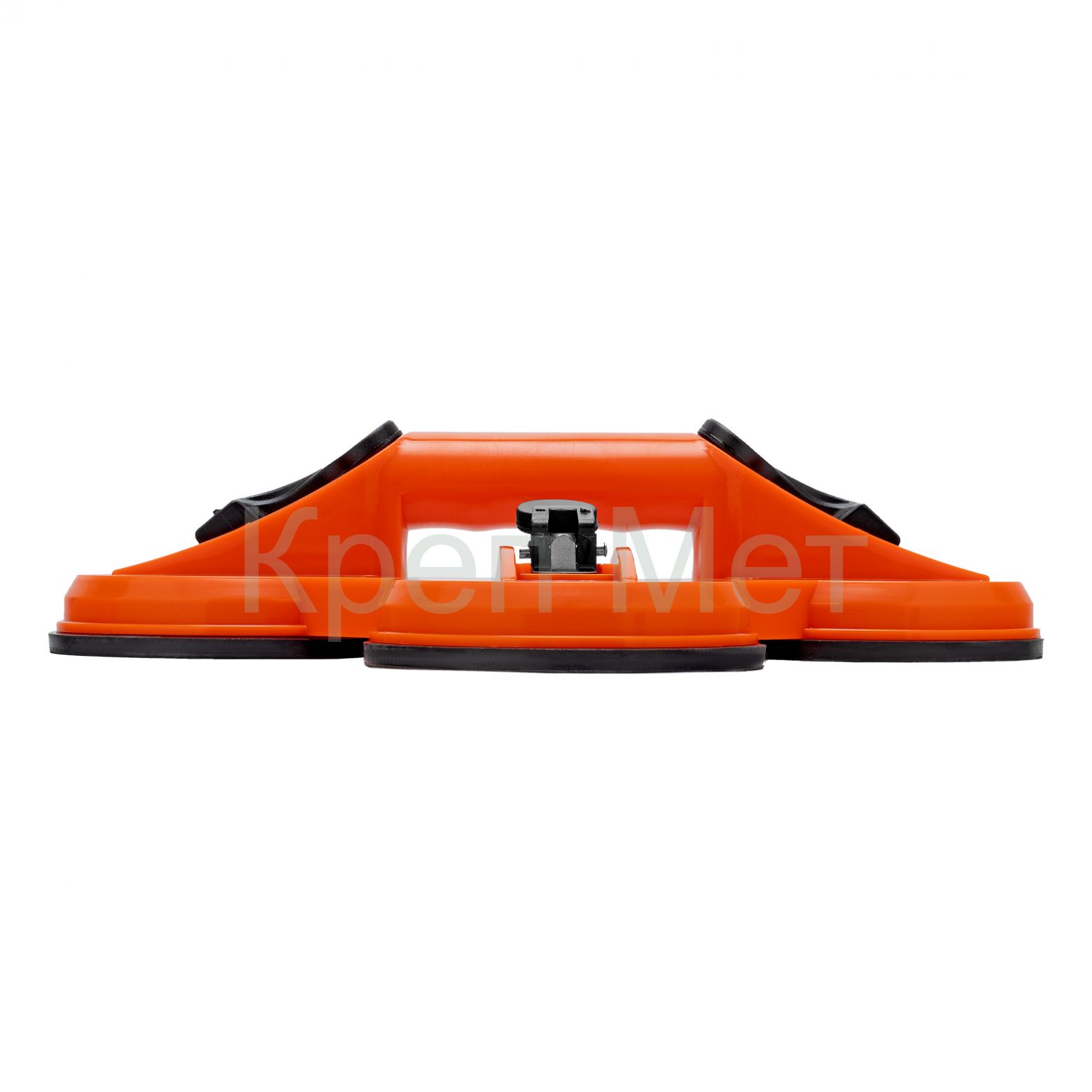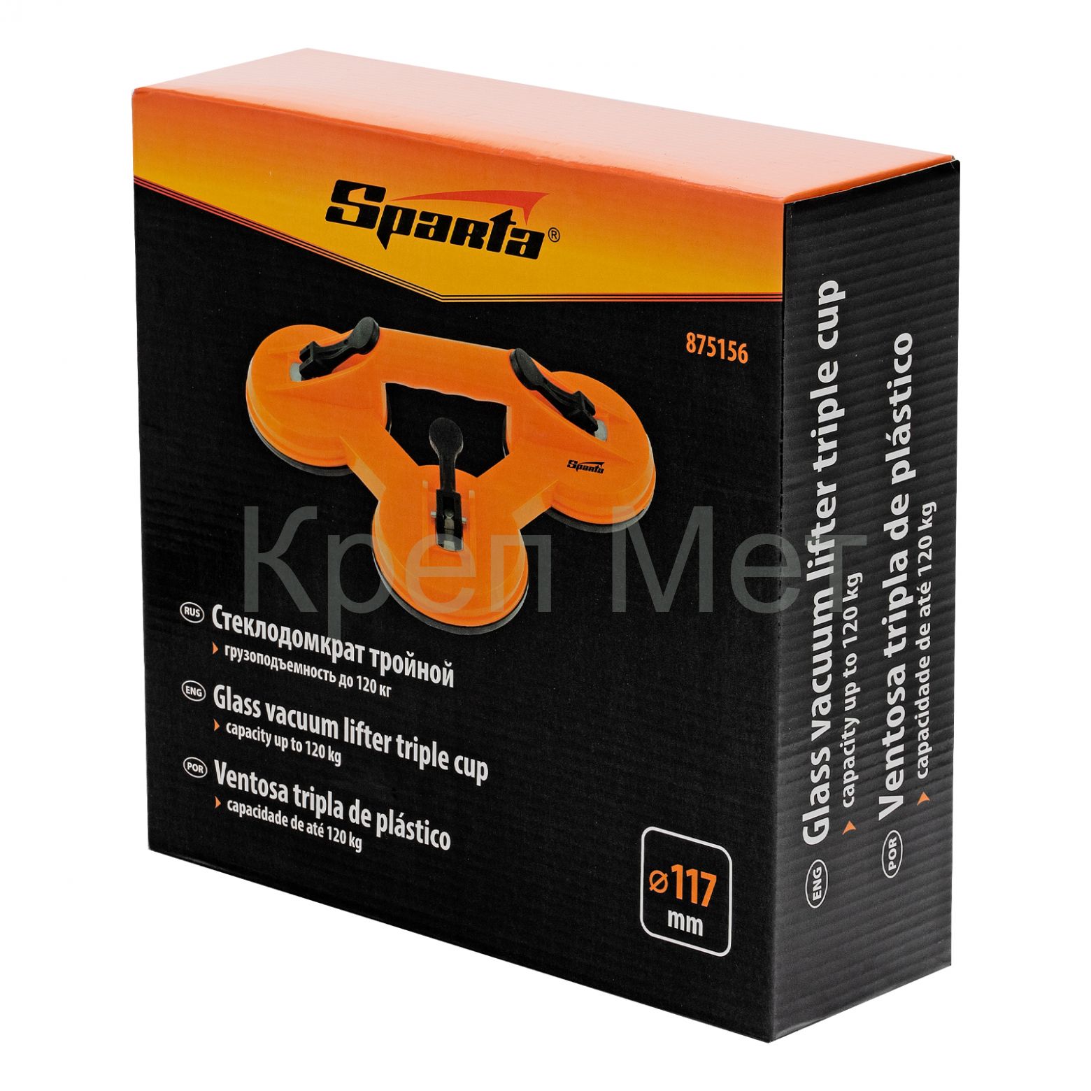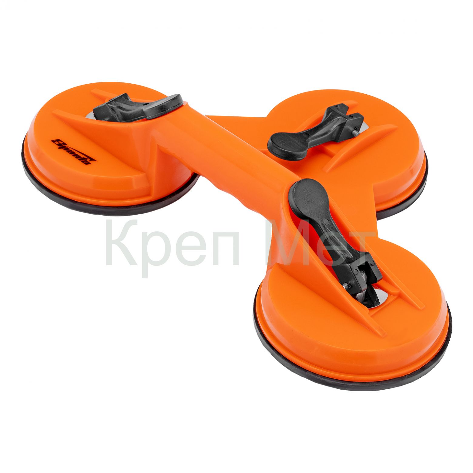 Тройной пластиковый стеклодомкрат Sparta 875156 — устройство для удержания, переноски и установки зеркал, стекол, столешниц, кафельной плитки и других гладких материалов. Три вакуумные присоски имеют зажимы, которые бережно, но крепко фиксируют их на поверхности. Стеклодомкрат будет полезен во время ремонта, а также пригодится в быту.