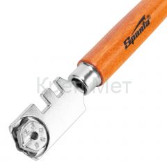 Шестироликовый стеклорез Sparta 872205 с деревянной рукояткой служит для резки стекла толщиной до 6 мм и подходит для бытового использования. С его помощью можно изготовить столешницу, полочку, заменить стекло в аквариуме или двери. Блок с 6 роликами позволяет быстро установить новый режущий элемент взамен изношенного — достаточно ослабить винт и повернуть головку. На головке имеются пазы шириной 4 и 5 мм для отламывания кромки стекла, увеличивающие функциональность стеклореза.