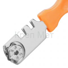 Шестироликовый стеклорез Sparta 872205 с пластмассовой рукояткой служит для резки стекла толщиной до 6 мм и подходит для бытового использования. С его помощью можно изготовить столешницу, полочку, заменить стекло в аквариуме или двери. Блок с 6 роликами позволяет быстро установить новый режущий элемент взамен изношенного — достаточно ослабить винт и повернуть головку. На головке имеются пазы шириной 4 и 5 мм для отламывания кромки стекла, увеличивающие функциональность стеклореза.
