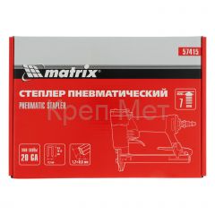 Пневматический степлер Matrix 57415 для прямоугольных скоб 20GA длиной от 6 до 13 мм применяется при проведении ремонтных и отделочных работ. С его помощью можно обить мебель, зафиксировать утеплитель, обшивку, листы фанеры и ДВП, закрепить провода и кабели, выполнить драпировку тканью. Инструмент оптимален для бытового применения.