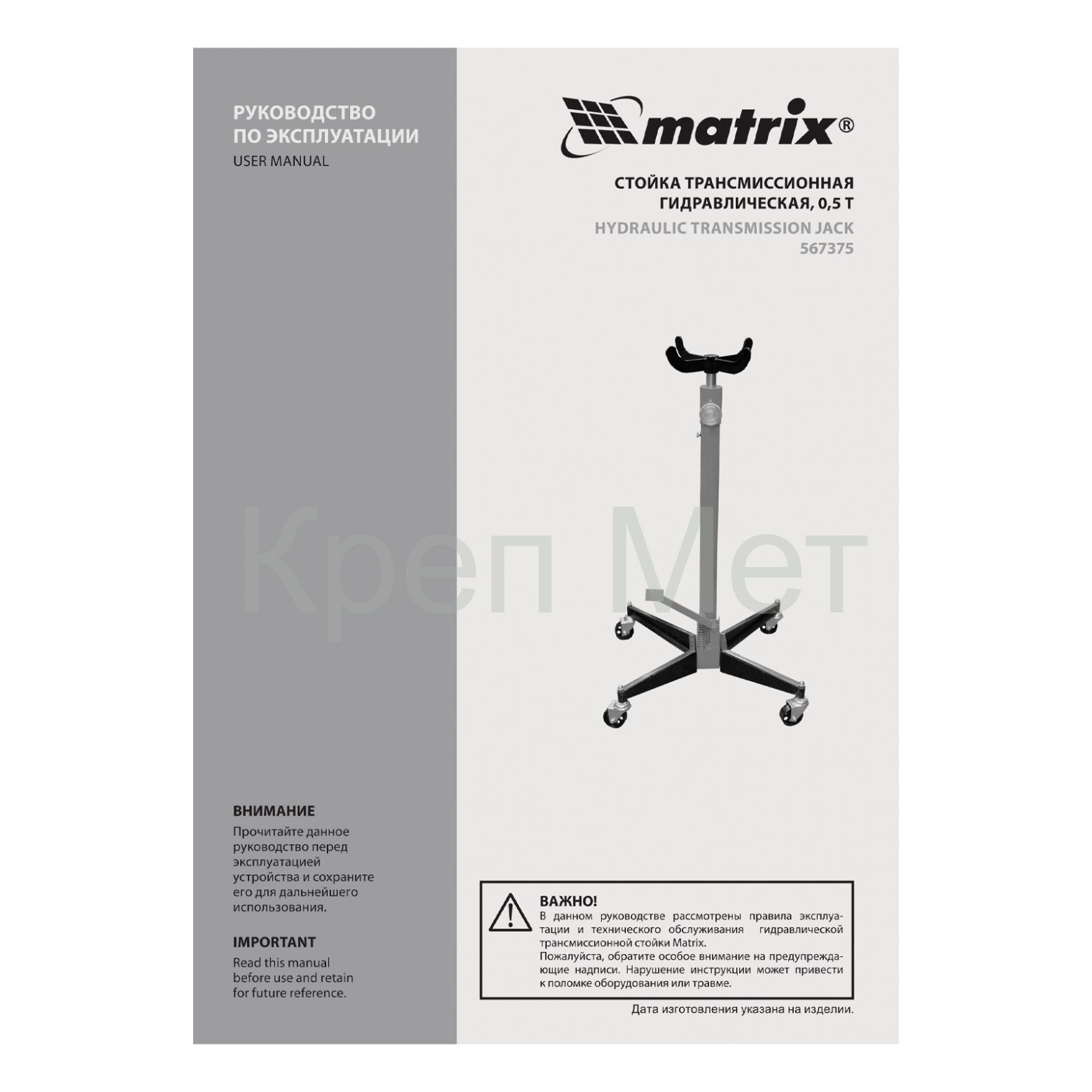 - Стойка трансмиссионная гидравлическая, 0.5 т, H подъема 1130-1945 мм Matrix