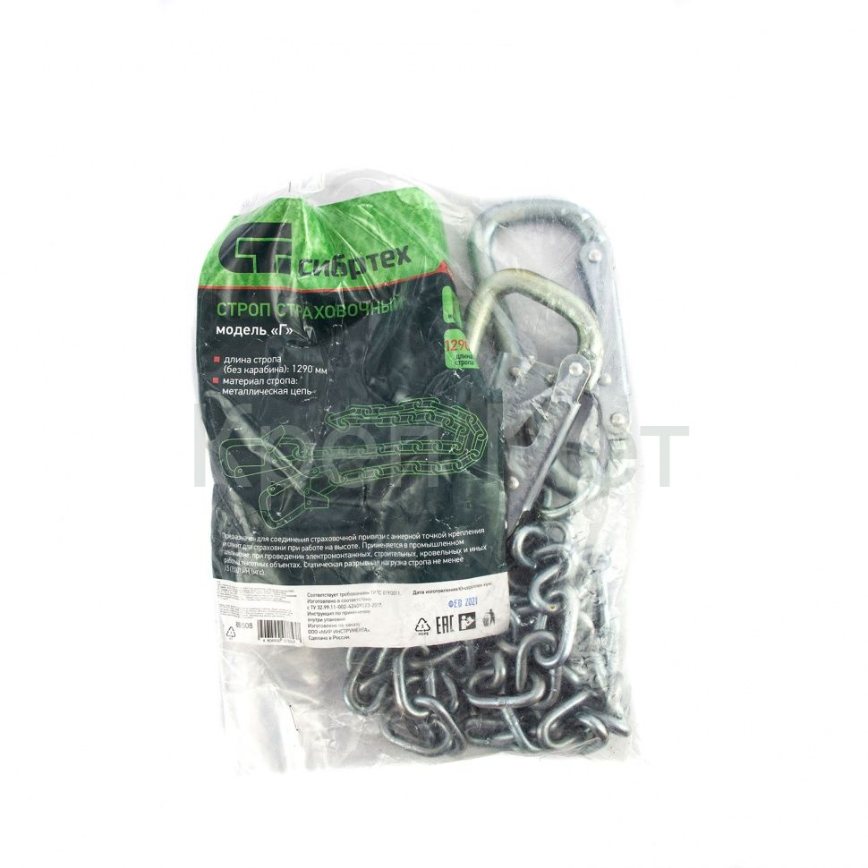 Цепной страховочный строп Сибртех 89508, модель «Г» с 2-мя карабинами, используется совместно со страховочно-удерживающими привязями для выполнения работ на высоте. Обеспечивает безопасность пользователя и оптимален для строительных, кровельных, монтажных и спасательных работ, в том числе связанных с огнем.