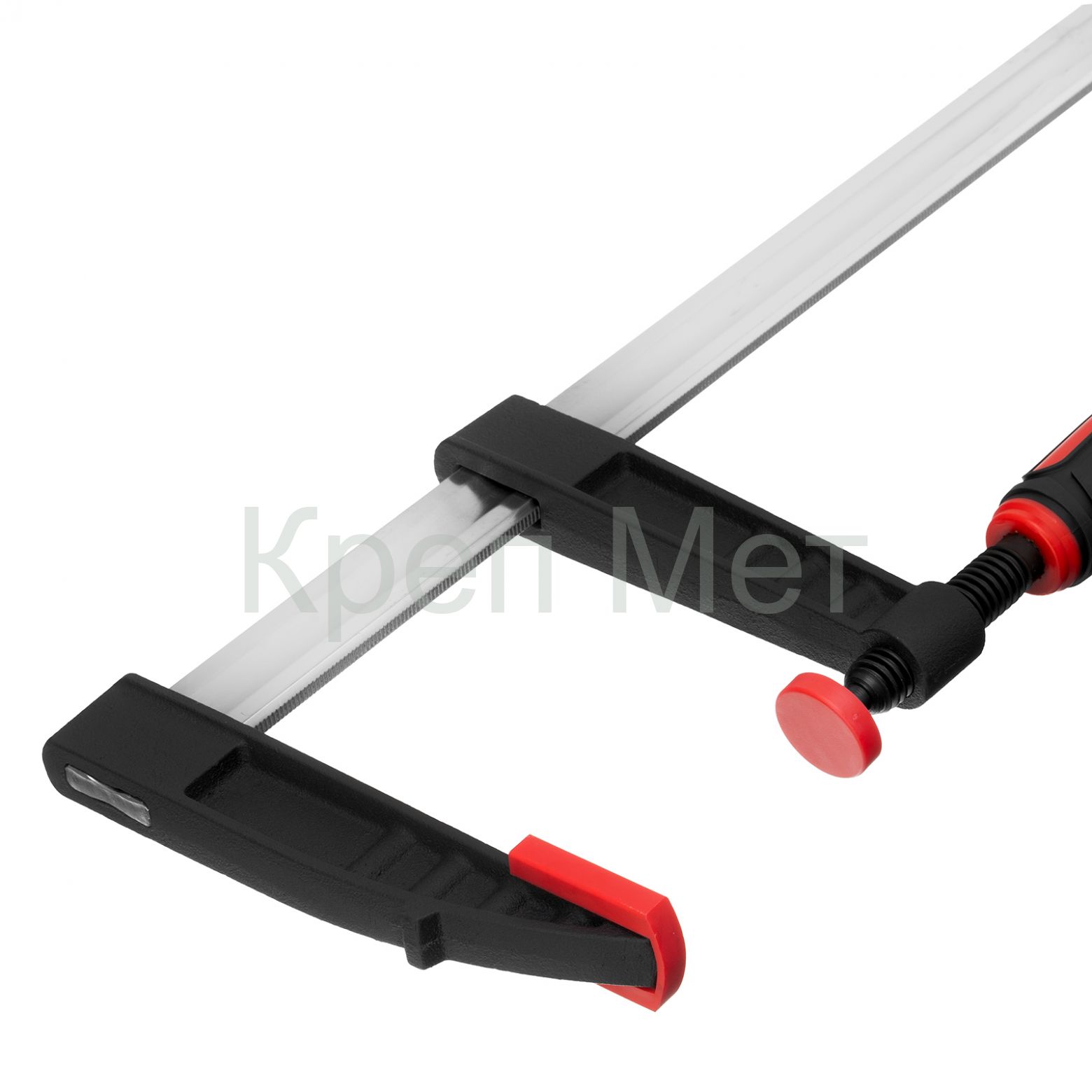 Усиленная F-образная струбцина Matrix 20411 размером 400 х 120 х 500 мм используется для зажима металлических, деревянных и других заготовок для их последующей обработки или сборки. Представляет собой штангу, на которой установлены 2 кронштейна — неподвижный и подвижный. Деталь помещается между ними и прижимается к губкам при помощи винтового зажима с трапециевидной резьбой. Величина захвата регулируется при помощи подвижного кронштейна и может достигать 400 мм. Струбцину используют для проведения слесарных и столярных работ. Металлическая конструкция выдерживает высокую температуру, поэтому инструмент пригодится для выполнения сварочных работ (перед началом необходимо снять пластиковые накладки с губок).