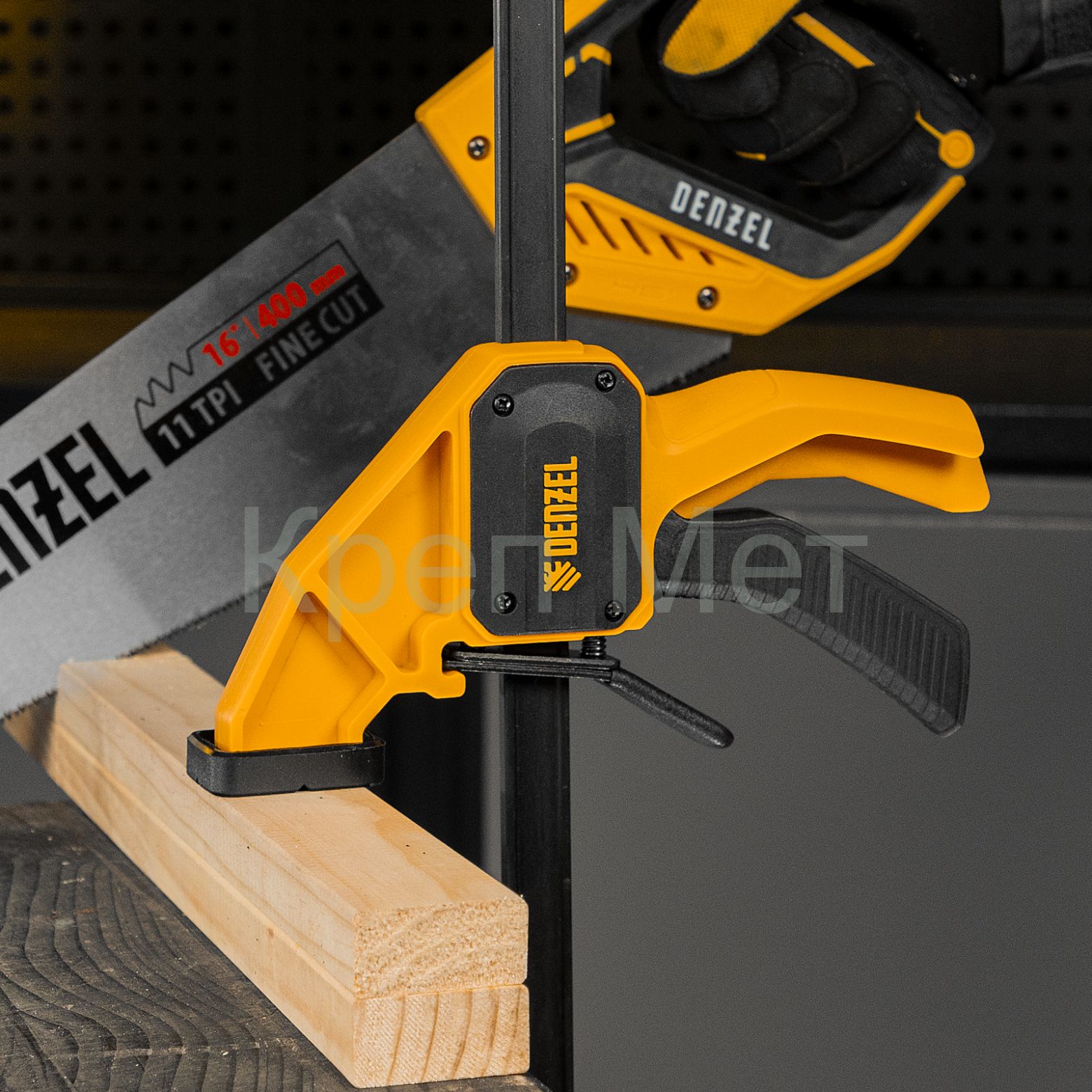 - Струбцина F-образная, быстрозажимная, 450 х 80 мм, усиленный нейлоновый корпус Denzel