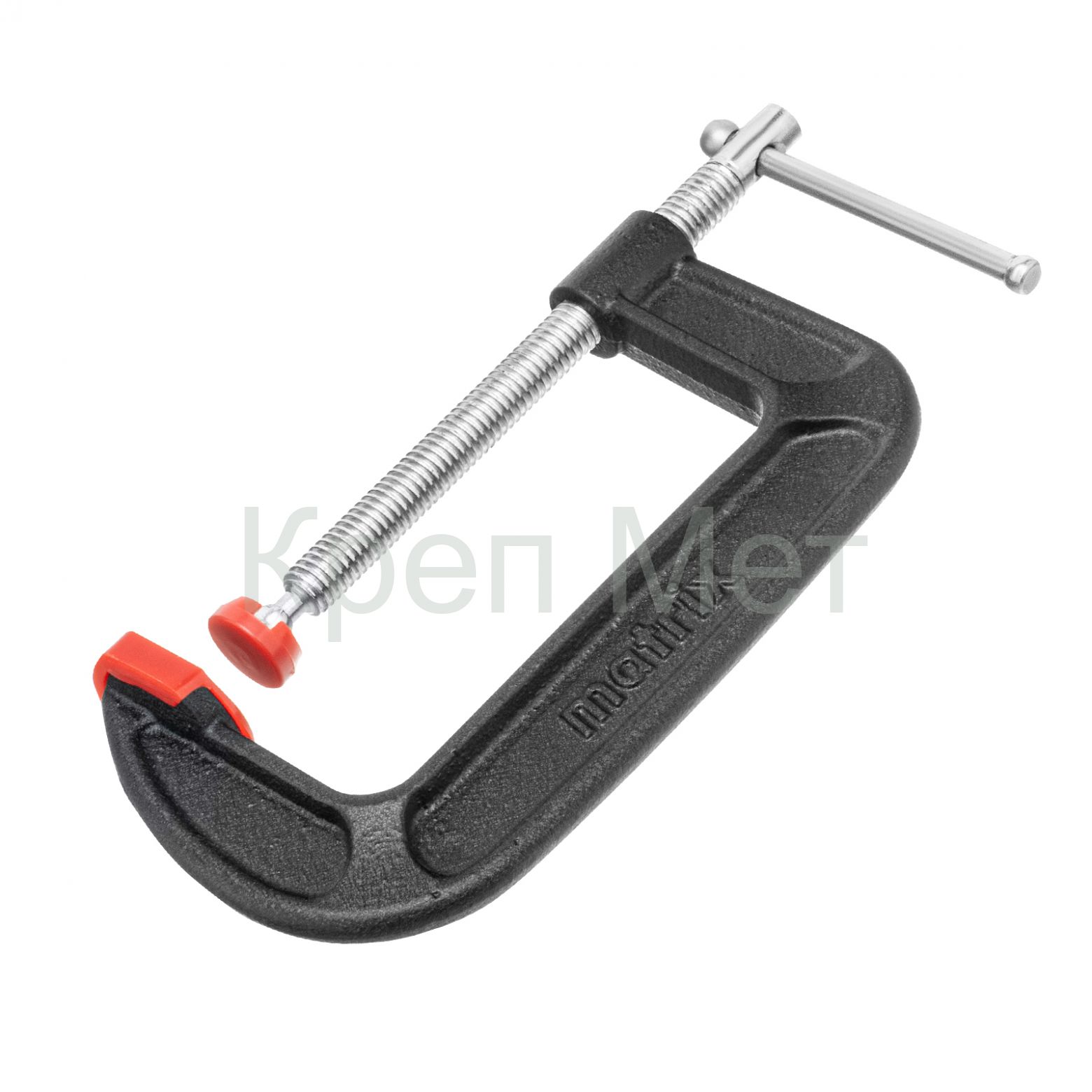 G-образная струбцина Matrix 20605 с максимальной шириной зажима 125 мм используется для фиксации заготовок или закрепления их на верстаке или станке. Позволяет склеивать детали, а также сверлить их, шлифовать, опиливать и проводить другие работы. Подходит для использования при сварке. Рама изготовлена из высокопрочного чугуна, поэтому выдерживает значительные усилия. Винт с трапециевидной резьбой обеспечивает надежную фиксацию предметов. Струбцина применяется в слесарном и столярном деле, а также в домашнем хозяйстве.
