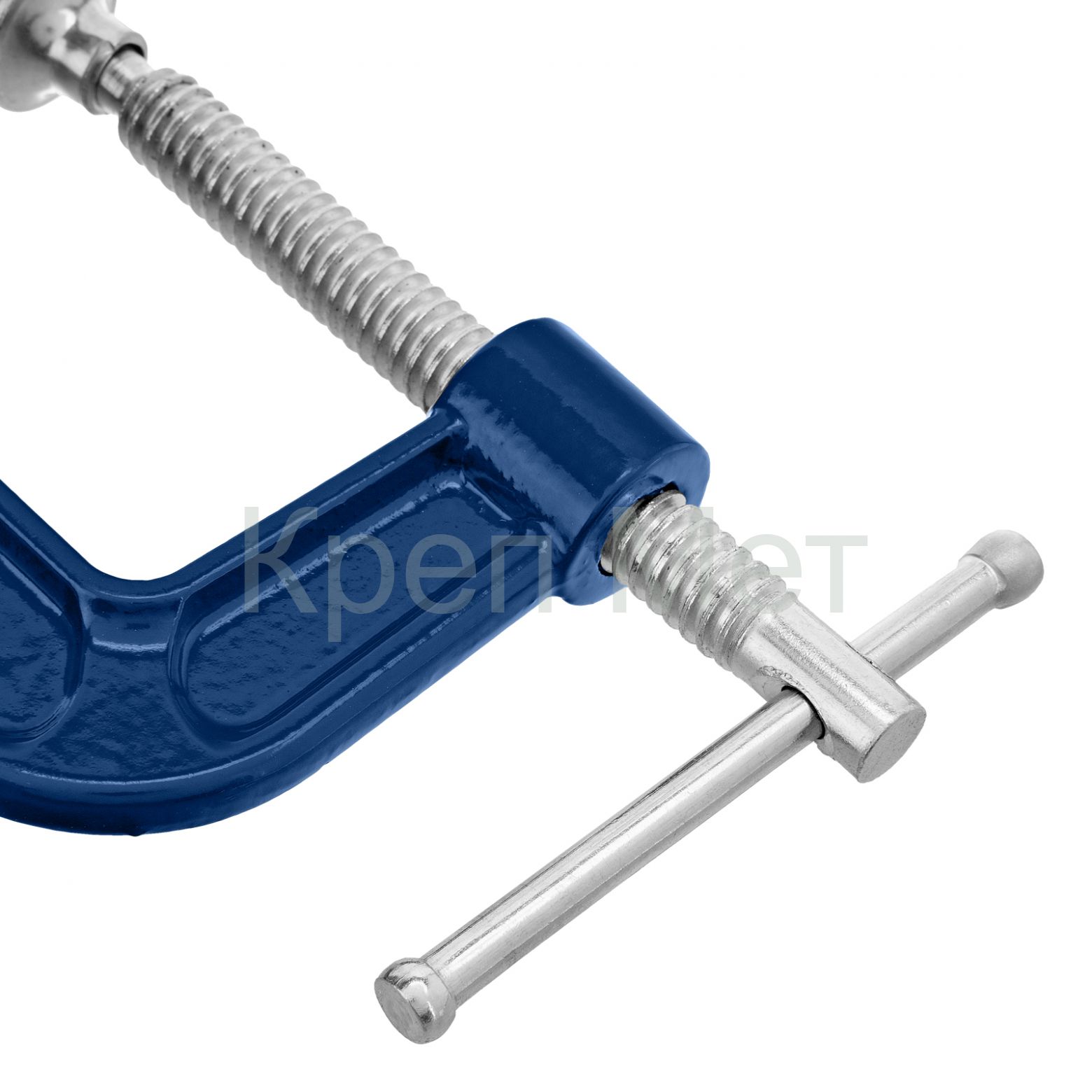 • Надежная фиксация деталей — струбцина имеет подвижный зажим, установленный на шаровой шарнир.