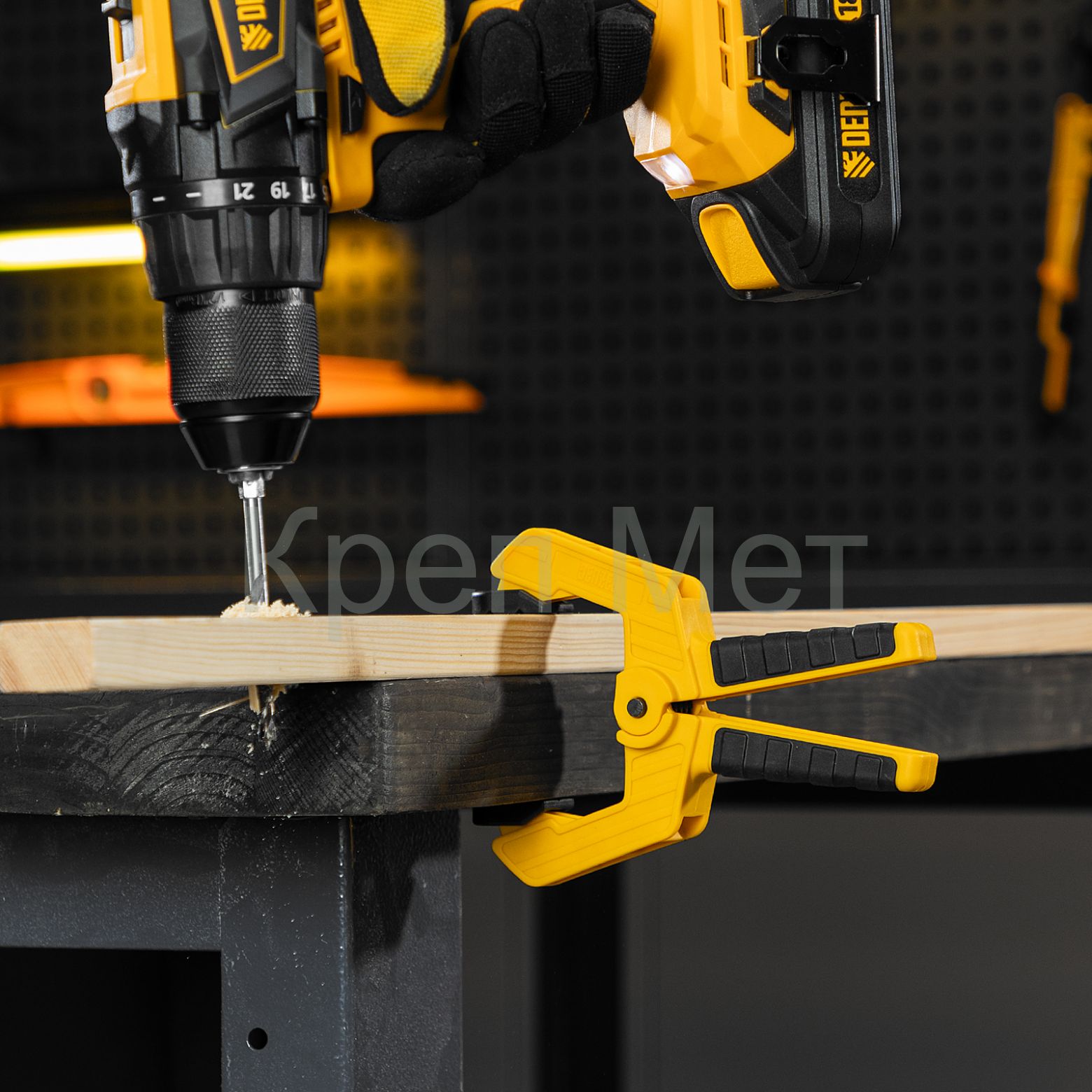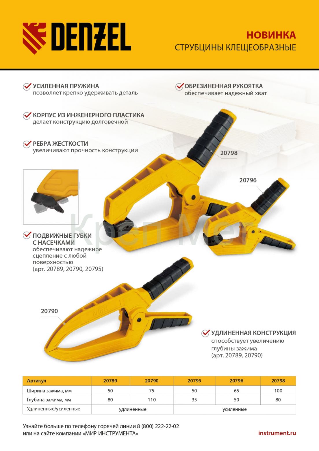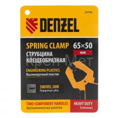 - Струбцина клещеобразная, усиленная 65 х 50 мм, двухкомпонентные рукоятки Denzel