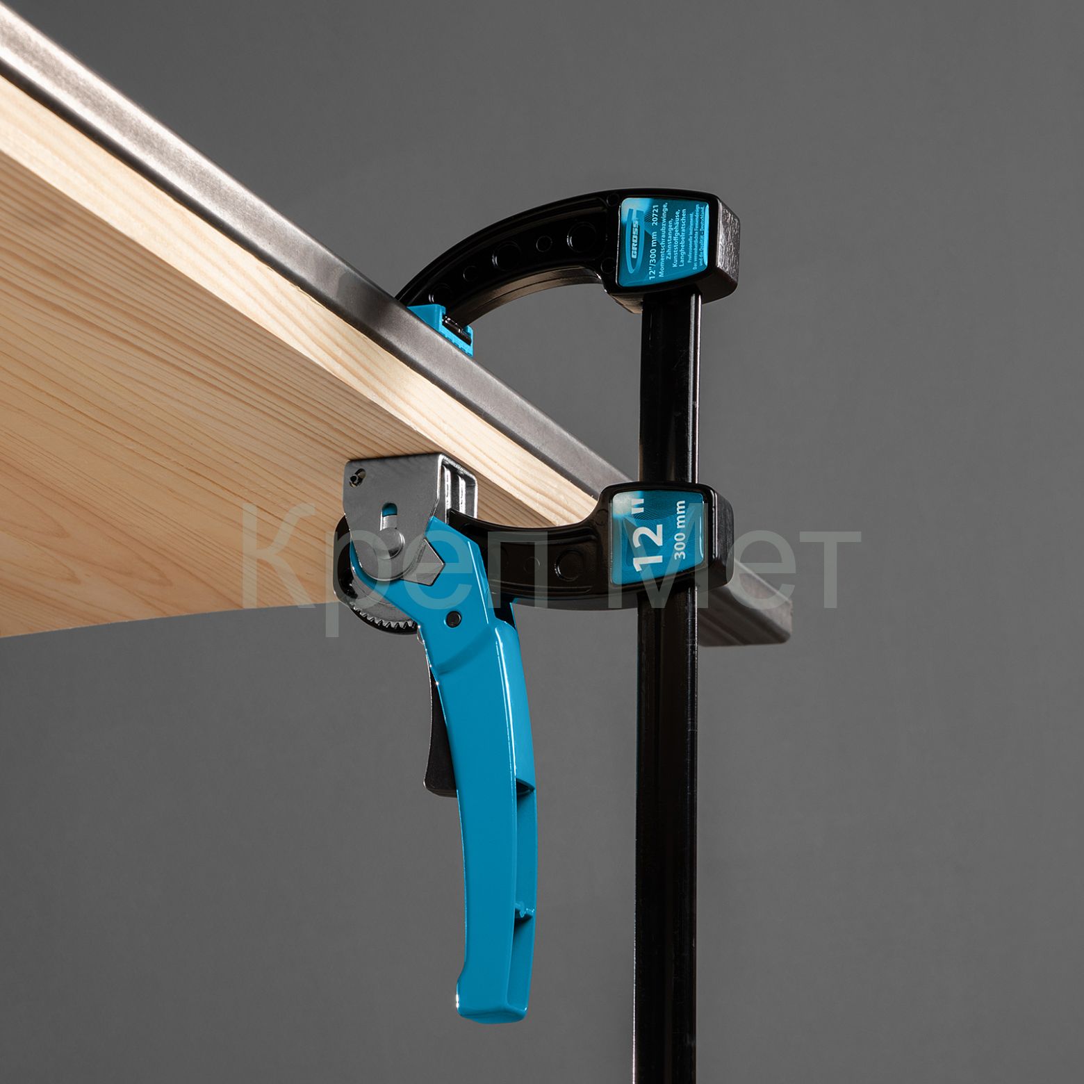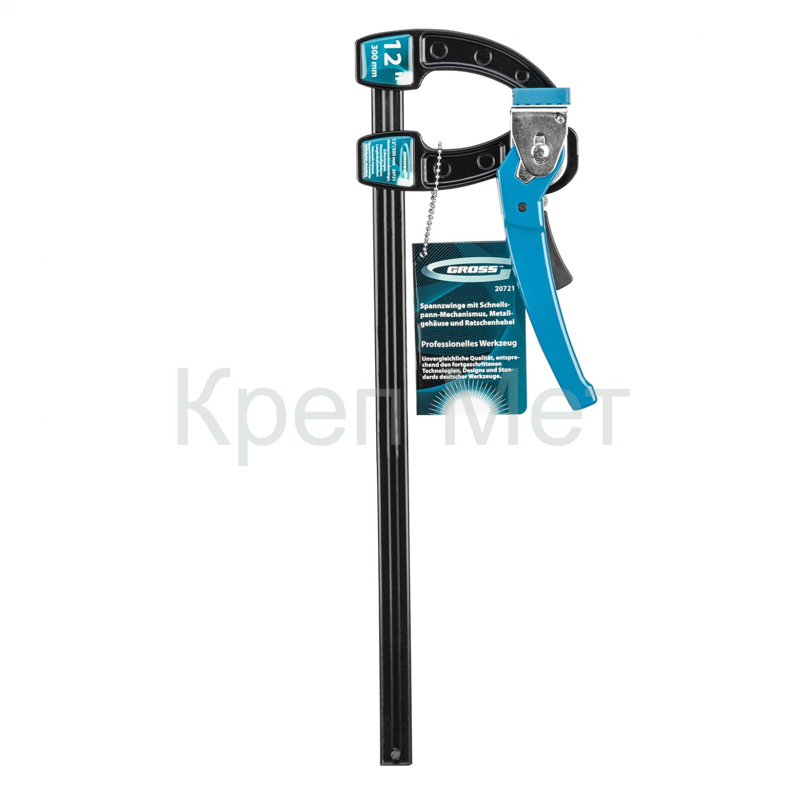 - Струбцина реечная быстрозажимная 12, металлический корпус, рычажный храповой механизм, 300 мм Gross