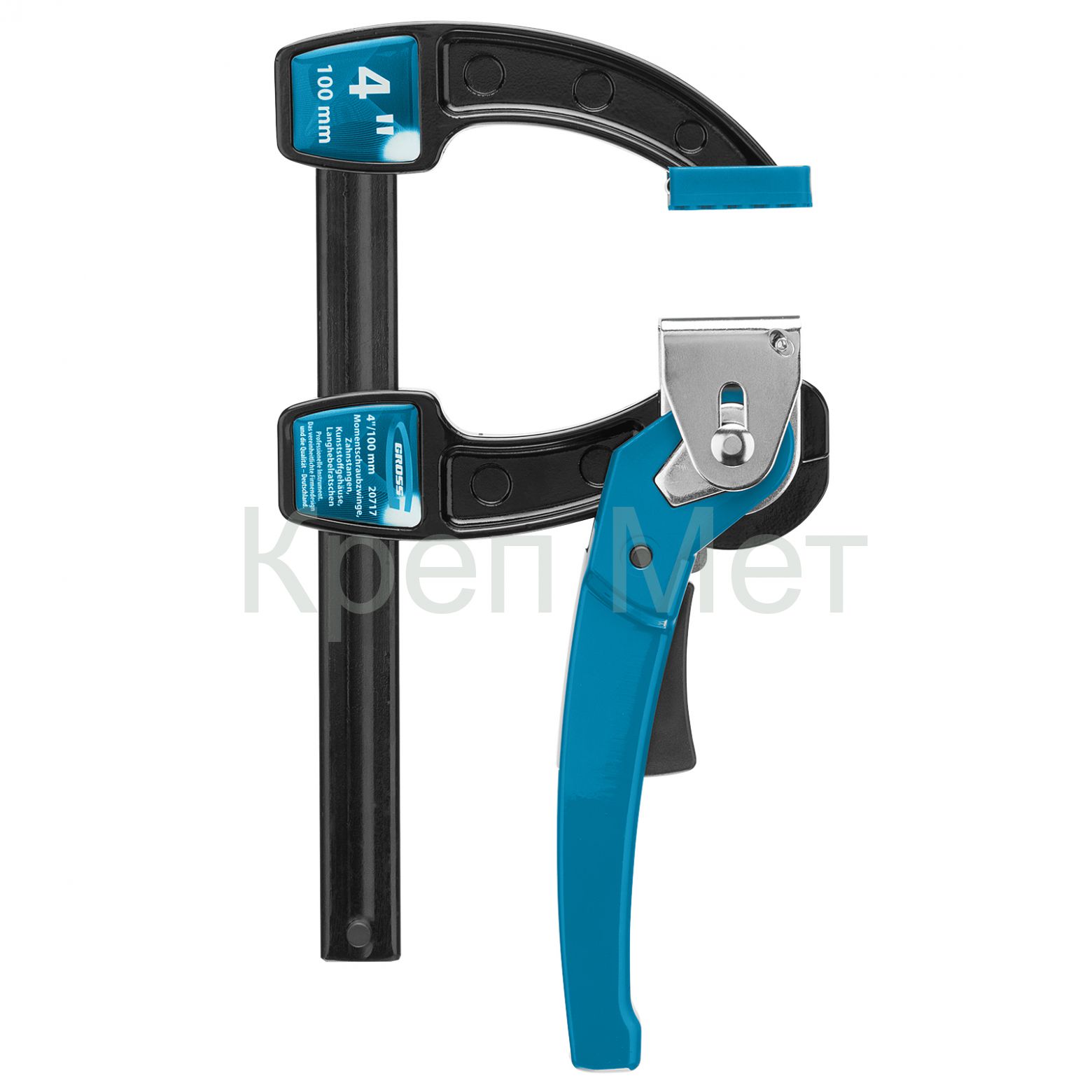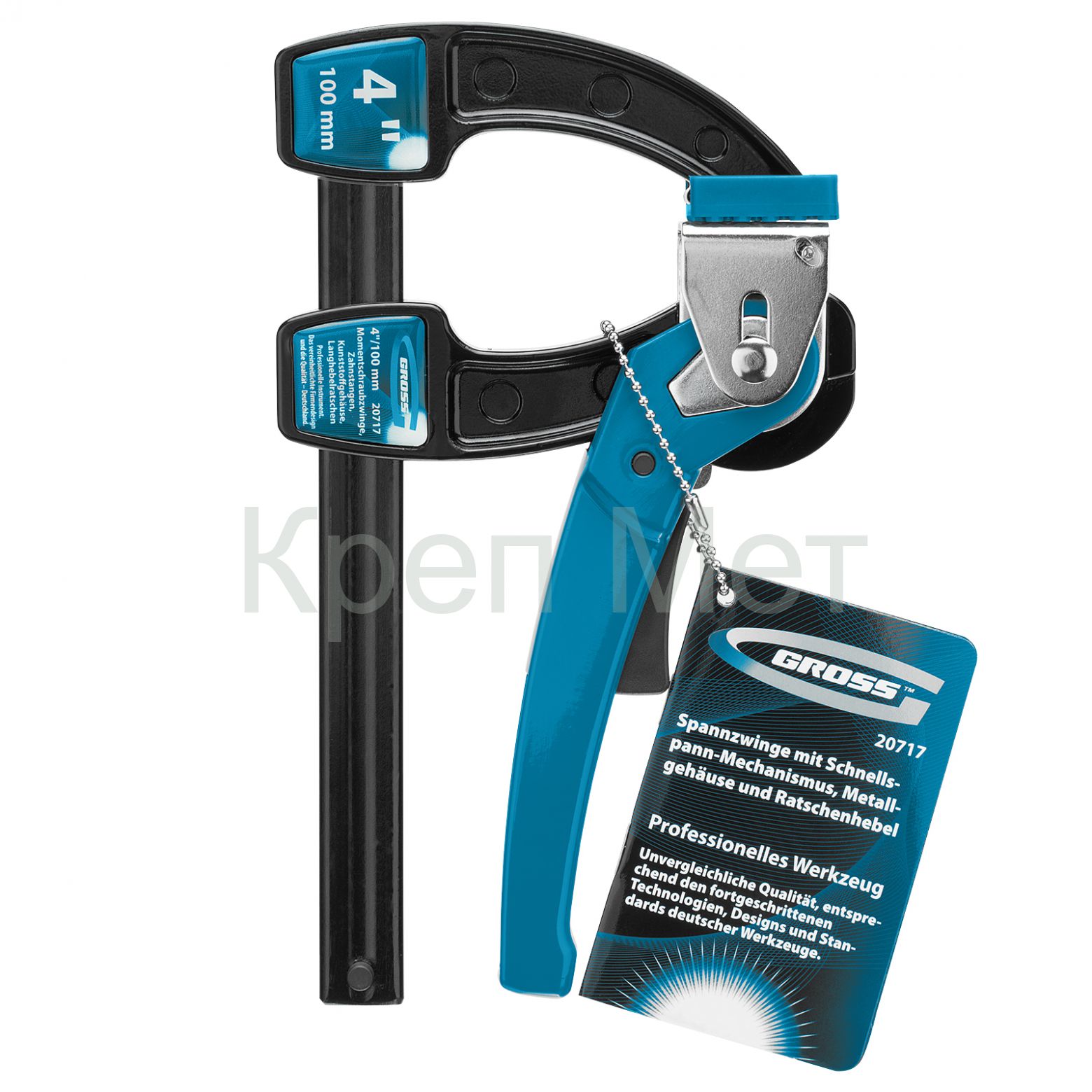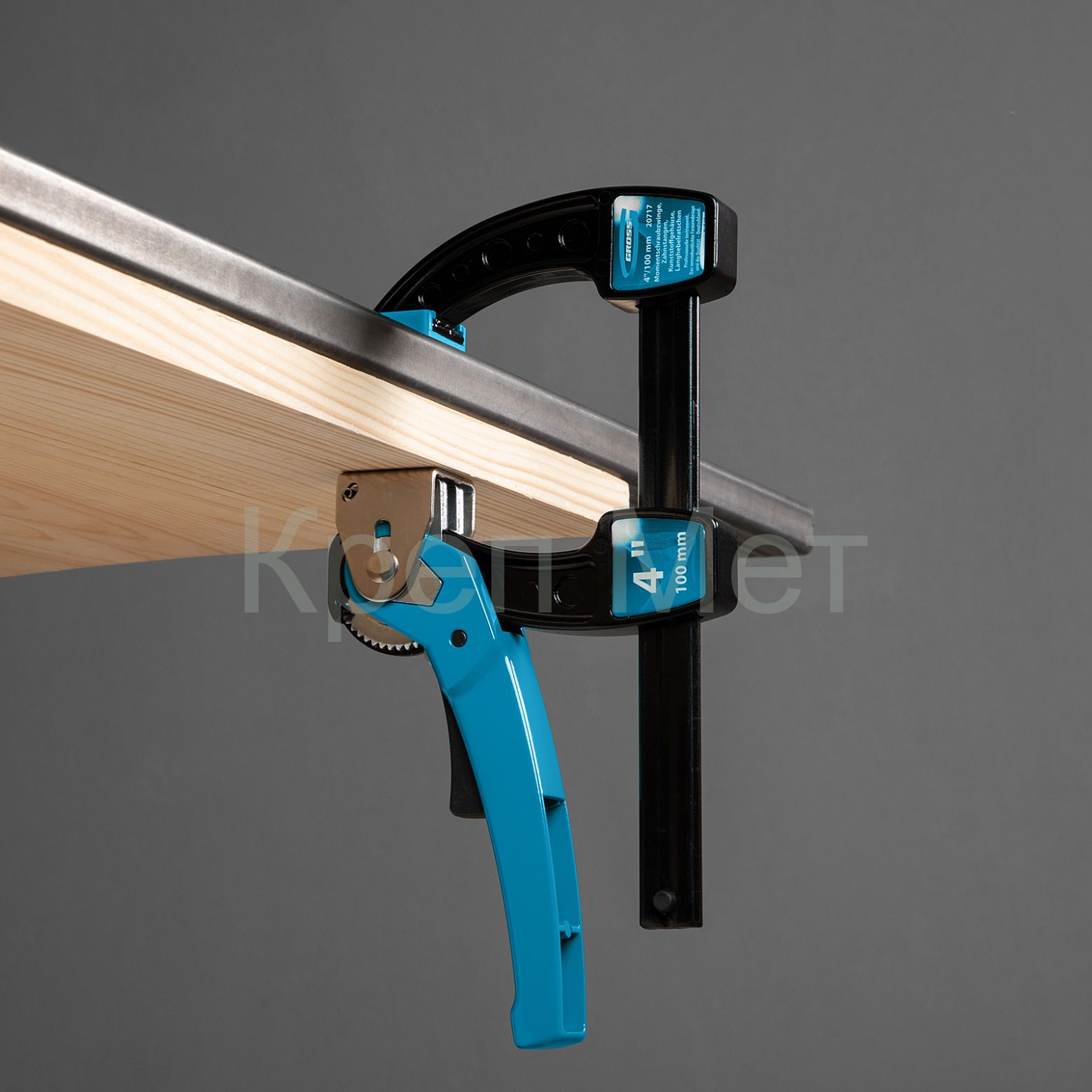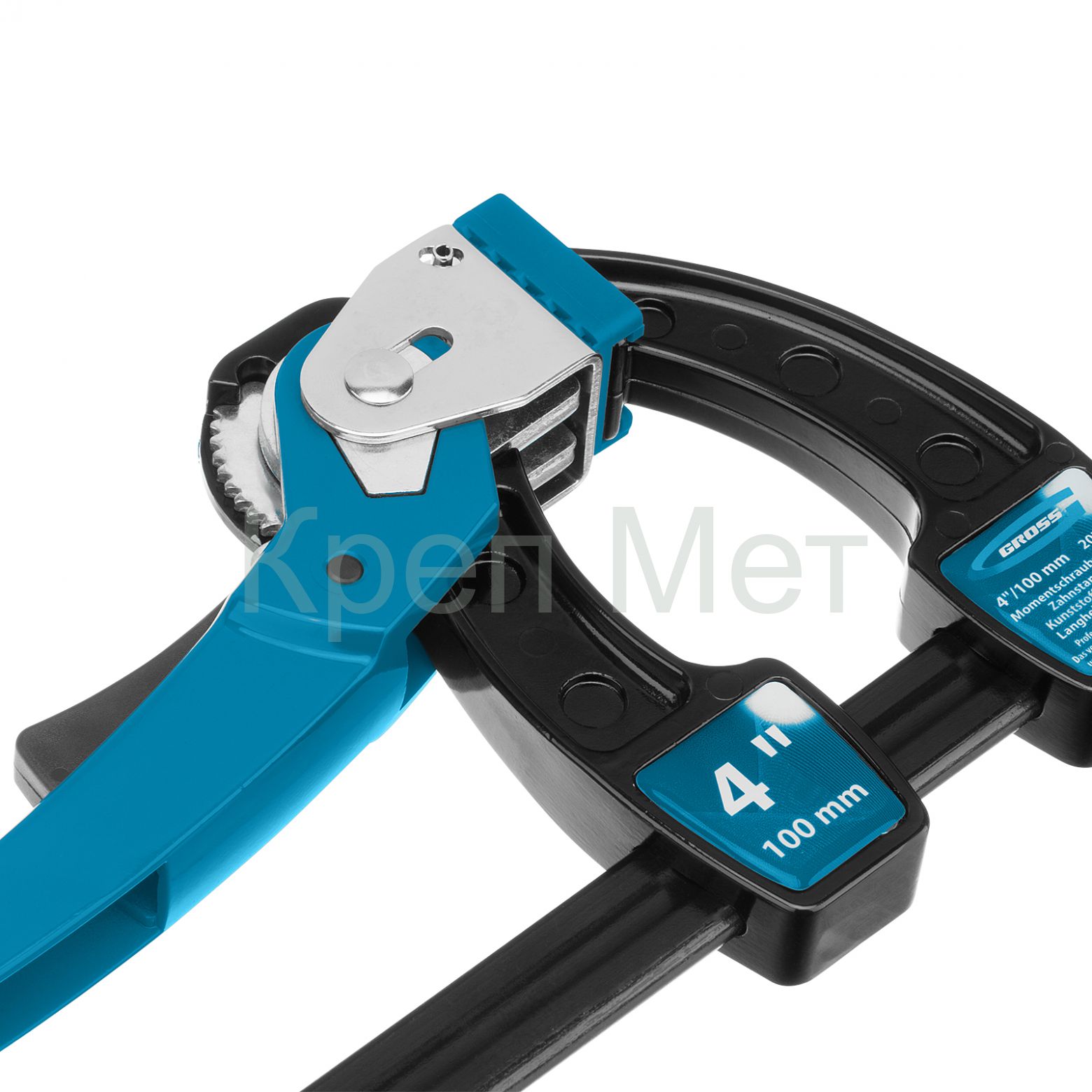 - Струбцина реечная быстрозажимная 4, металлический корпус, рычажный храповой механизм, 100 мм Gross