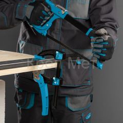 Реечная быстрозажимная струбцина Gross 20717, с металлическим корпусом, с рычажным храповым механизмом, служит для фиксирования деталей и конструкций толщиной до 4 дюймов / 100 мм. Губки подводят вплотную к детали, а храповый механизм с рычагом позволяет произвести окончательную фиксацию, максимально используя мускульную силу. Стопорный механизм VIBRAFIX способен удерживать предметы с усилием 1200 Н. Струбцина используется для выполнения профессиональных столярных и слесарных работ.