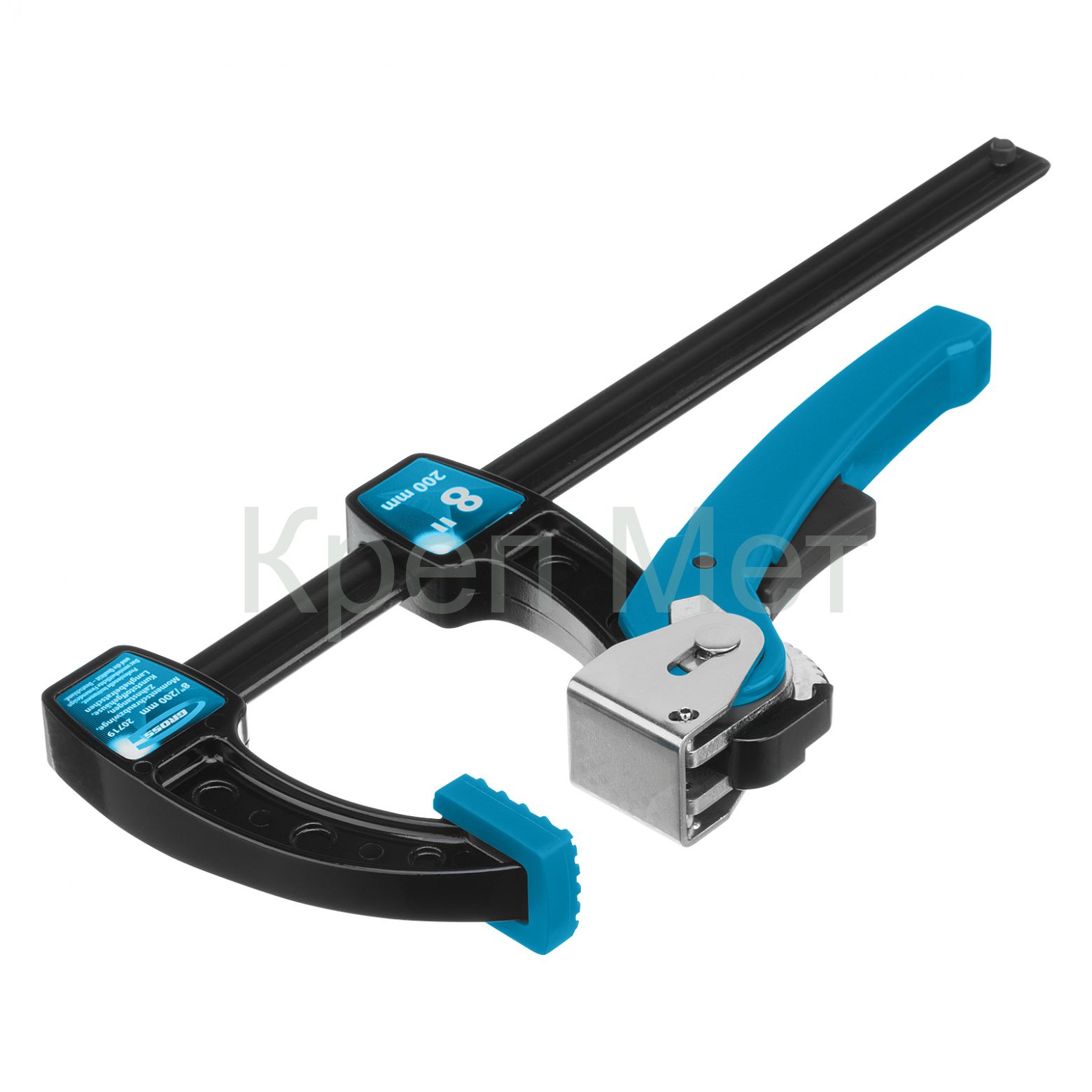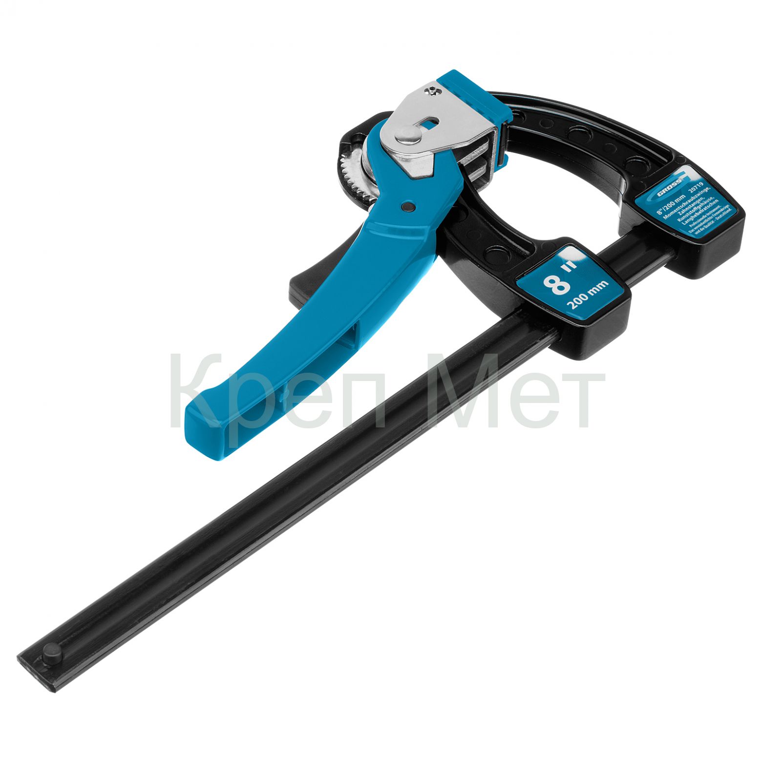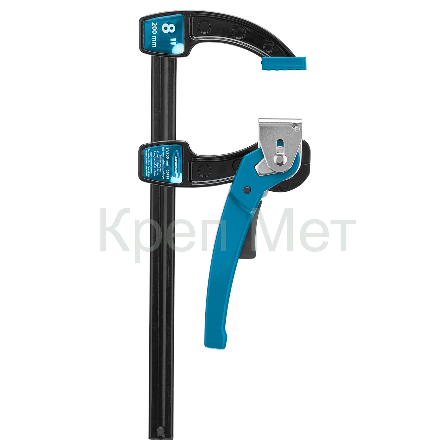 - Струбцина реечная быстрозажимная 8, металлический корпус, рычажный храповой механизм, 200 мм Gross
