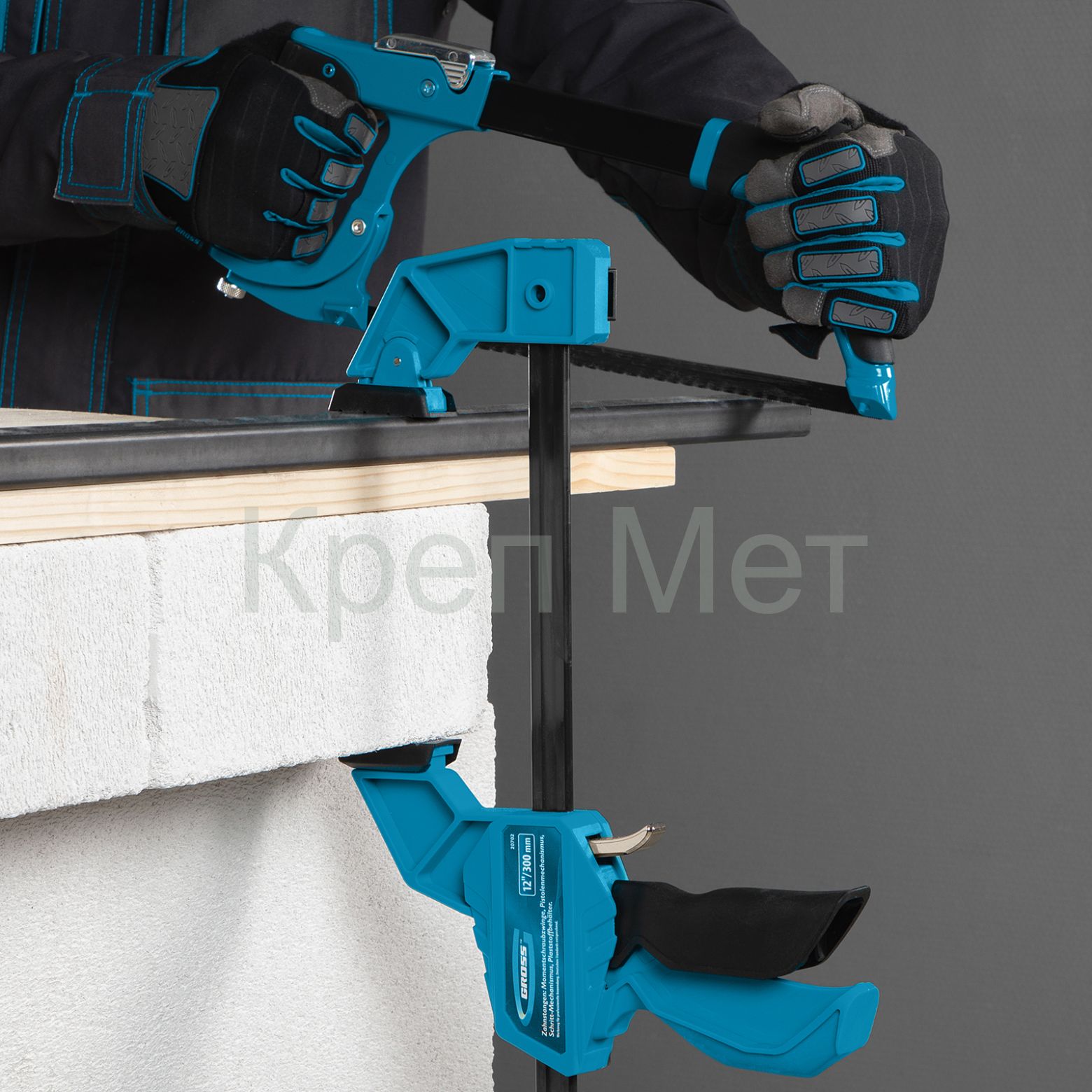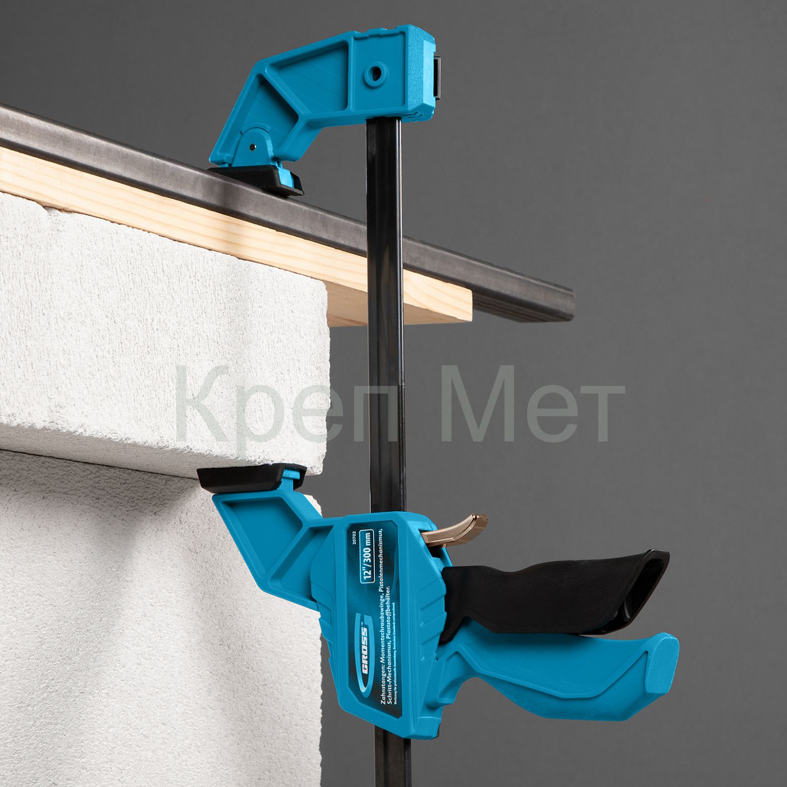 - Струбцина реечная, быстрозажимная, пистолетного типа, пошаговый механизм, пластиковый корпус, 300 мм Gross