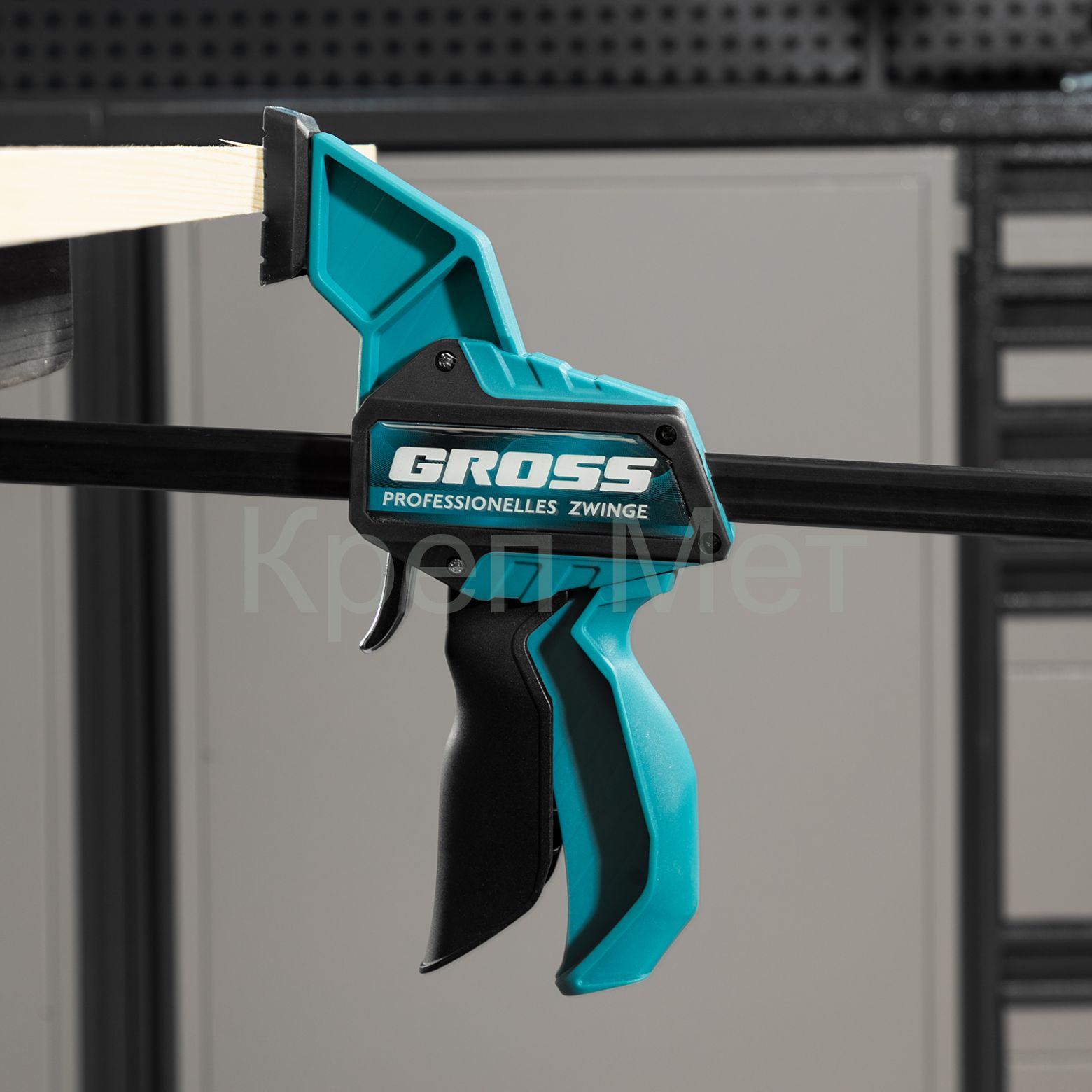 - Струбцина реечная, быстрозажимная, пистолетного типа, пошаговый механизм, пластиковый корпус, 450мм Gross