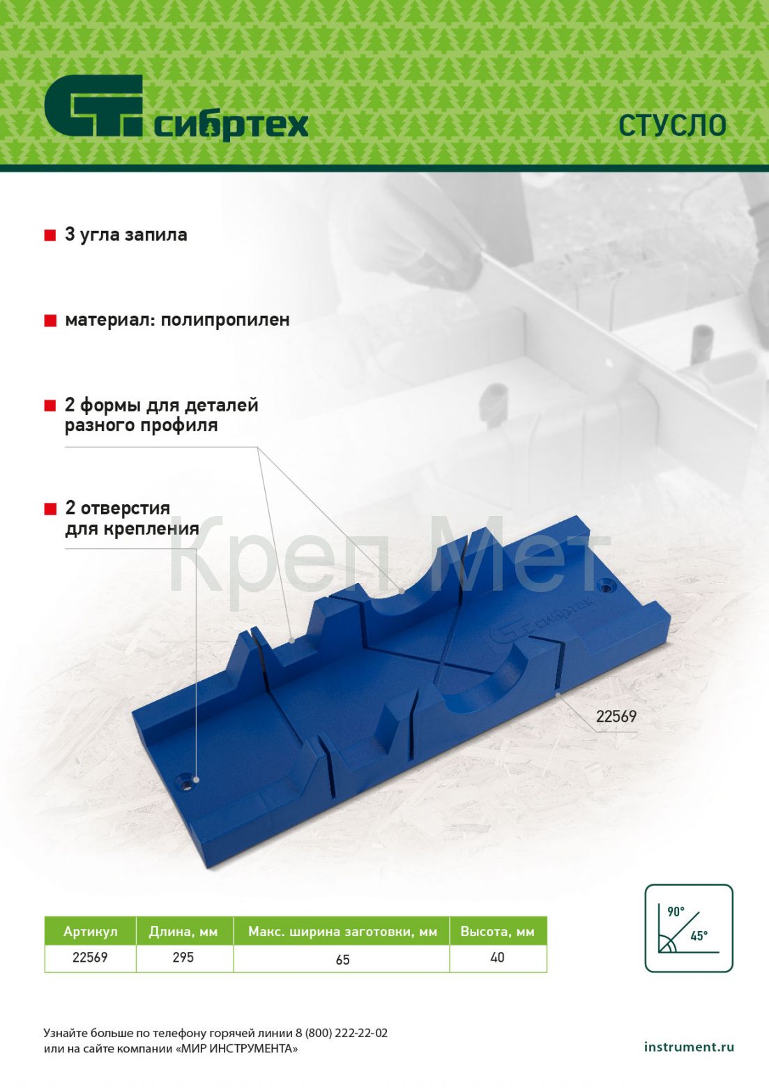- Стусло, 295 х 65 мм, пластиковое, 3 угла для запила Сибртех