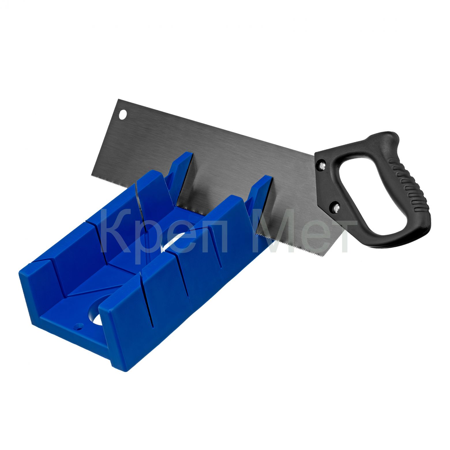 - Стусло пластиковое, синее, 4 угла для запила, пила 350 мм Сибртех