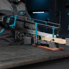- Функциональность — прижимные струбцины надежно фиксируют заготовку, измерительные шкалы облегчают определение ее рабочей длины и угла распила.