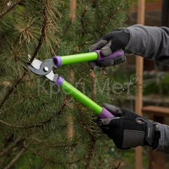 - Прочная конструкция — рукоятки изготовлены из профильной стальной трубы, поэтому сучкорез выдерживает значительные нагрузки и подходит для длительного использования.