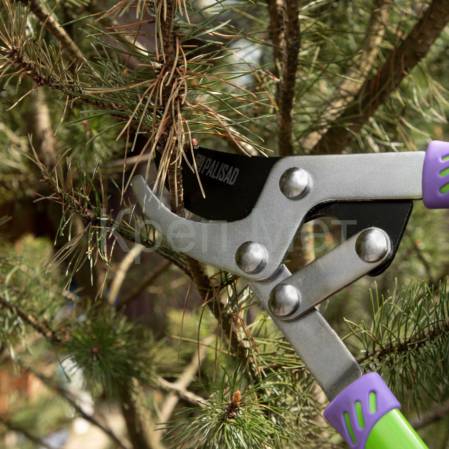 Сучкорез прямого реза Palisad 60522 длиной 750 мм, с двухкомпонентными рукоятками, оснащен двухрычажным механизмом, увеличивающим усилие реза на 20%. Используется для обрезки живых веток толщиной не более 35 мм. Предназначен для работы двумя руками. Успешно справляется с жесткими и высоко растущими ветками. Рабочее лезвие легко срезает ветви благодаря прецизионной заточке и тефлоновому покрытию, которое дополнительно обеспечивает надежную защиту от коррозии. Сучкорез будет полезен для ухода за садом и огородом.