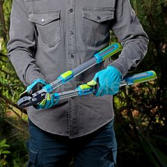 Сучкорез с наковальней Palisad LUXE 60577, с телескопическими алюминиевыми рукоятками, регулируемыми по длине от 560 до 740 мм, предназначен для срезания сухих и увядших веток диаметром до 35 мм. Раздвижные рукоятки упрощают работу в труднодоступных местах. Инструмент используется для работы двумя руками. Лезвие имеет прецизионную заточку и тефлоновое покрытие, поэтому эффективно справляется с жесткой древесиной. Сучкорез пригодится владельцам загородных участков.