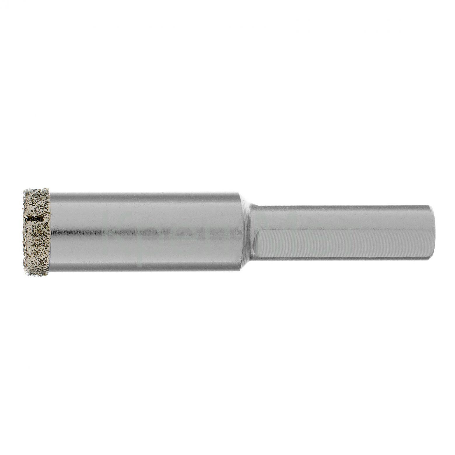 Универсальное алмазное сверло по керамограниту Matrix 726143 размером 14 х 67 мм, с 3-гранным хвостовиком, применяется для получения отверстий в стекле, плитке, кафеле. За счет высокой концентрации алмазов в режущем слое оно легко справляется со сверлением керамогранита. Сверло рассчитано на профессиональное использование с дрелями и шуруповертами, рекомендованная скорость составляет 350-700 об/мин. Водяное охлаждение в процессе работы значительно повышает срок службы оснастки.