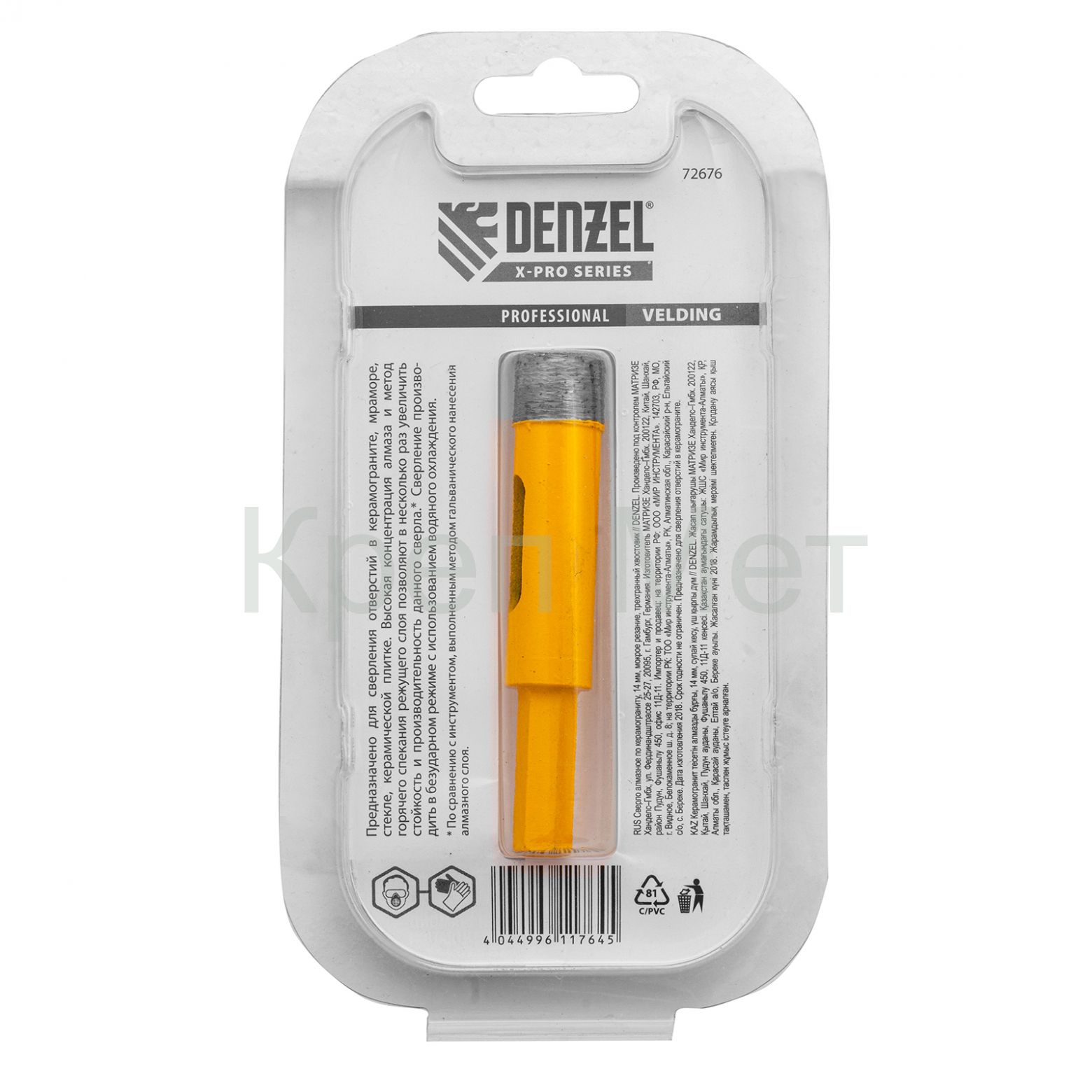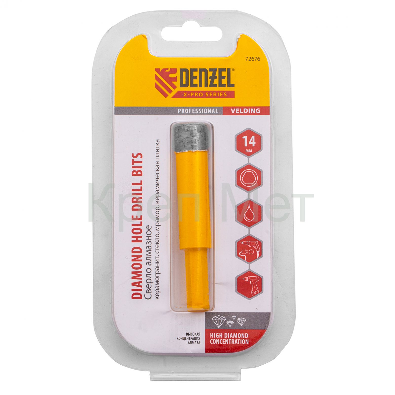 Сверло алмазное по керамограниту, 14 мм, мокрая резка, трехгранный хвостовик Denzel