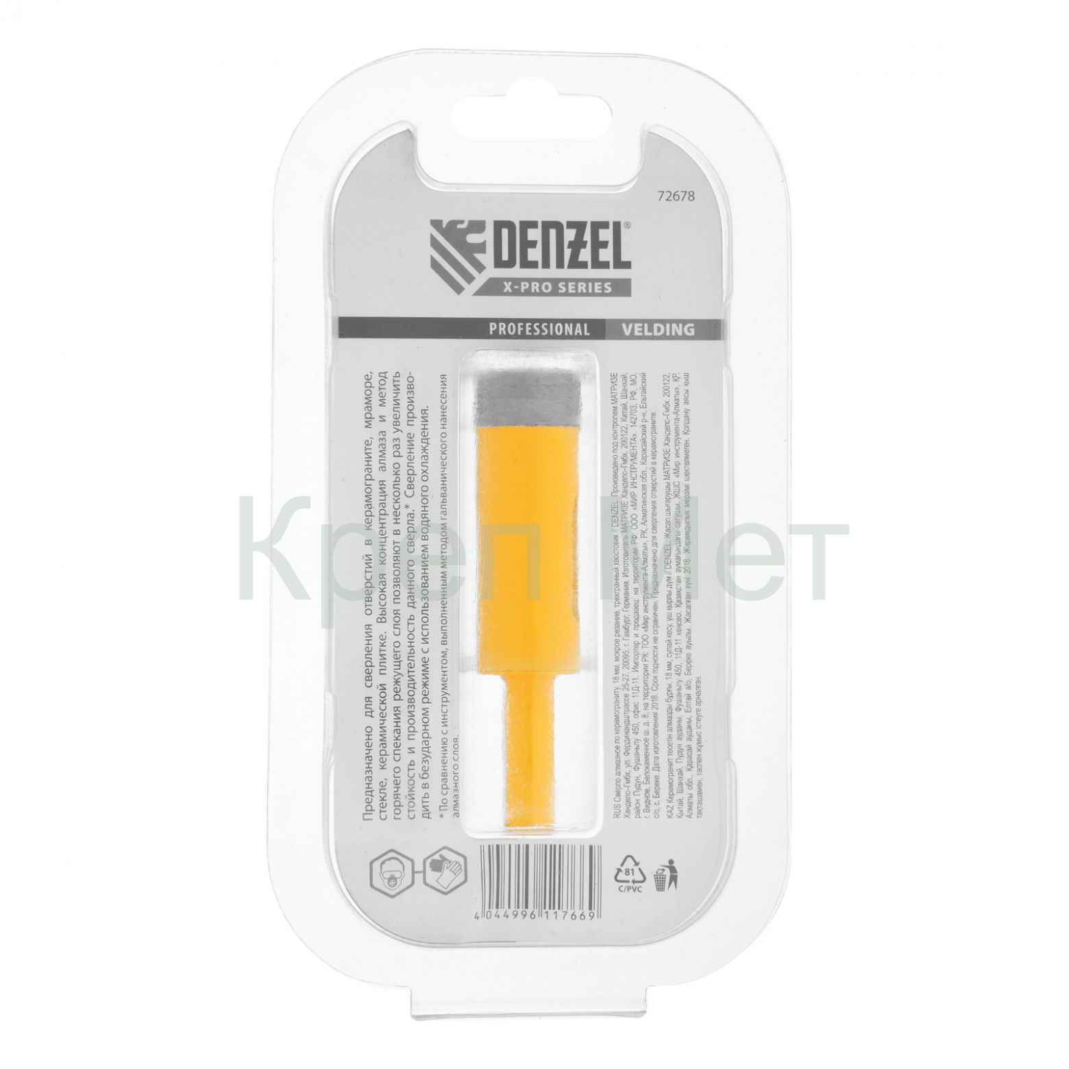 Алмазное сверло Denzel 72678 с шестигранным хвостовиком, для «мокрой» резки, — режущий инструмент для получения точных отверстий диаметром 18 мм. Подходит для работ по стеклу, керамике, керамограниту и мрамору. Используется в качестве оснастки для дрелей и шуруповертов. Сверление с применением водяного охлаждения позволит избежать перегрева сверла и продлить срок его службы. Использование кондуктора 72830 препятствует смещению коронки и облегчает засверливание. Оснастка предназначена для профессионального использования.