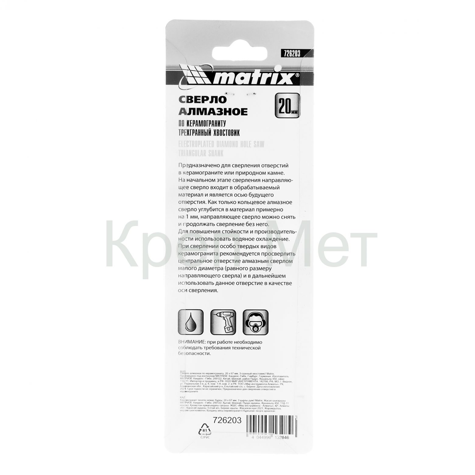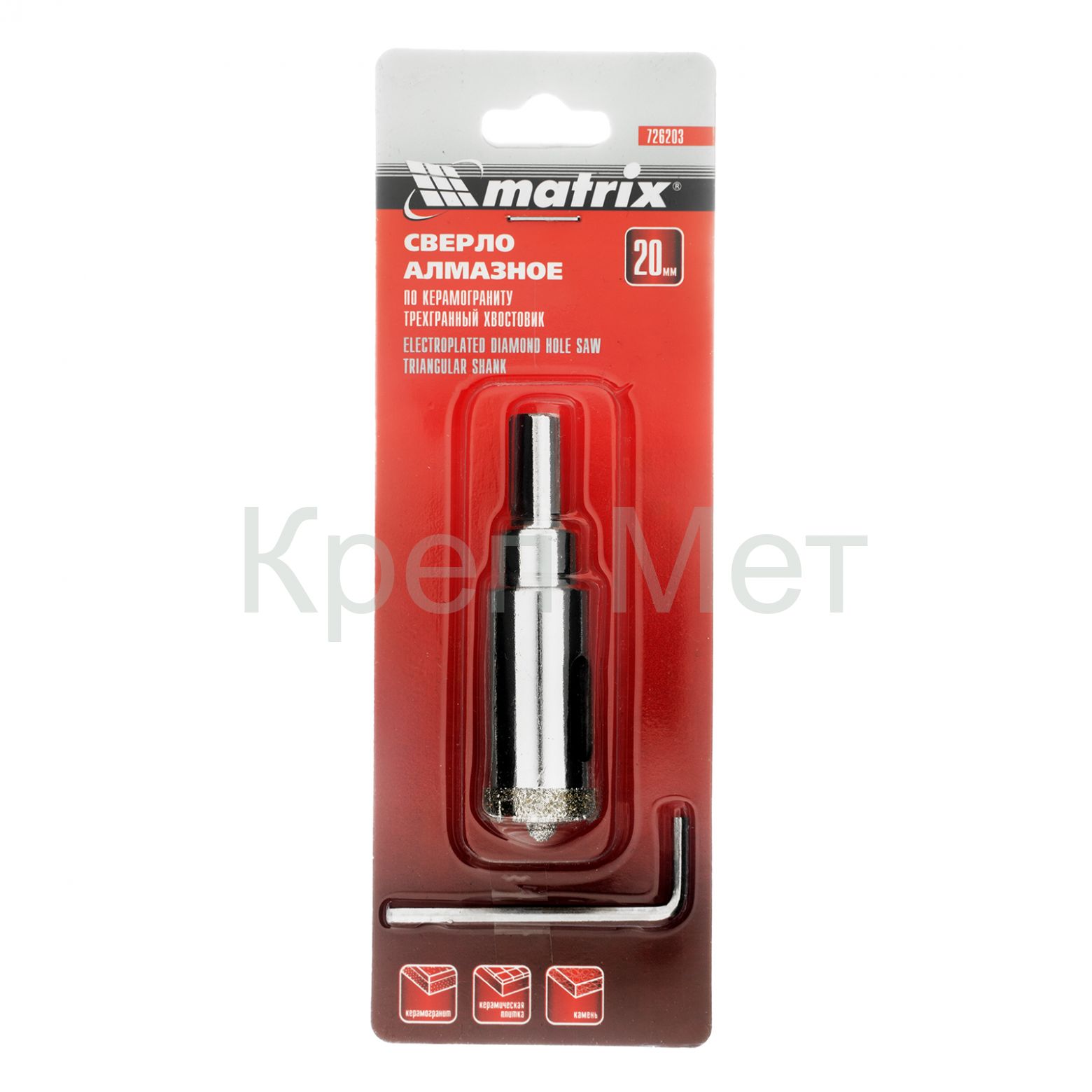 - Сверло алмазное по керамограниту, 20 х 67 мм, трехгранный хвостовик Matrix