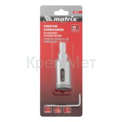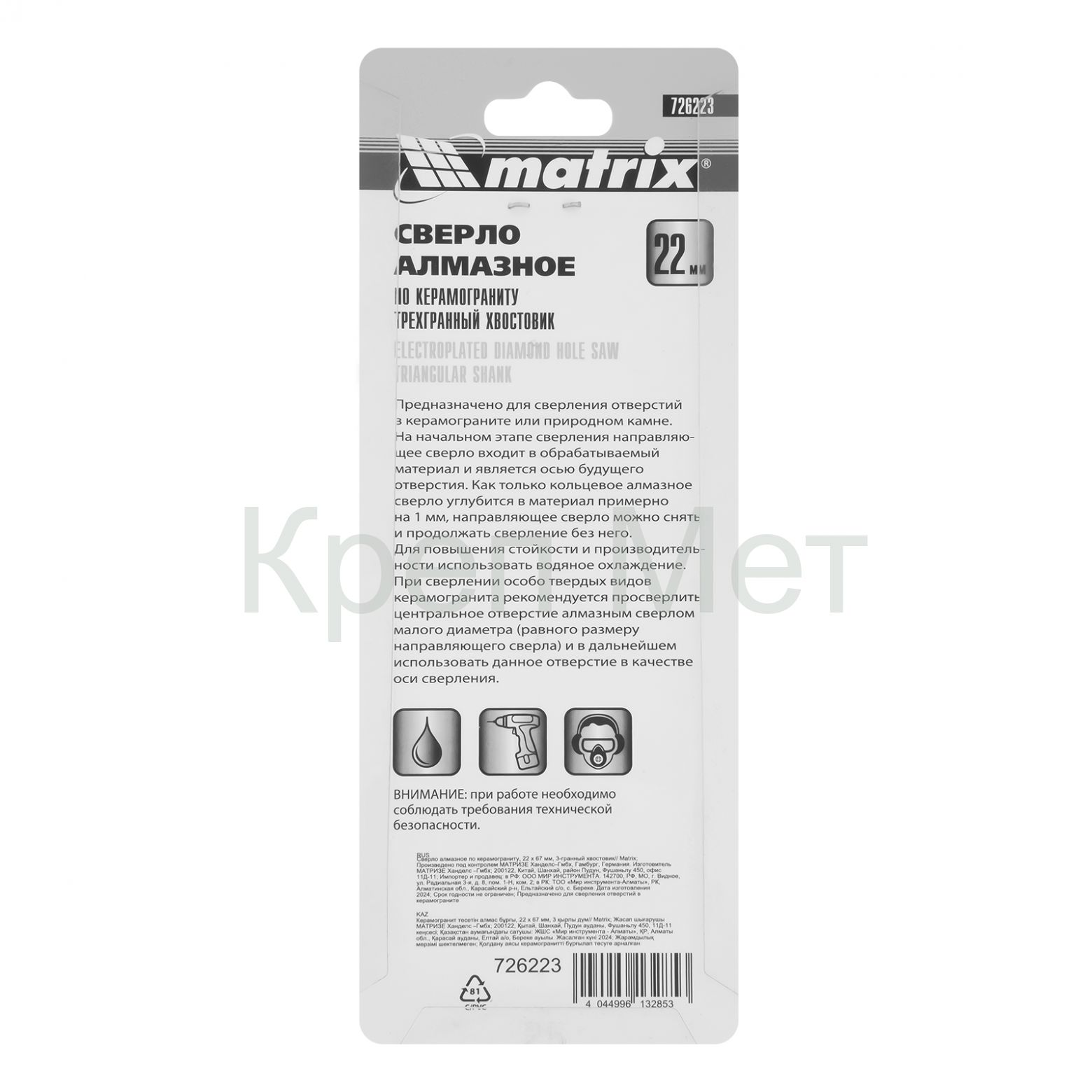 Сверло алмазное по керамограниту, 22 х 67 мм, трехгранный хвостовик Matrix