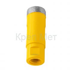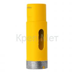 Алмазное сверло Denzel 72681 диаметром 25 мм, с резьбой М14, предназначено для «мокрого» сверления по керамограниту, мрамору, стеклу и керамической плитке. Позволяет получать ровные отверстия без сколов, используется для проведения ремонтных и отделочных работ. Сверло (коронку) устанавливают на вал углошлифовальной машины, благодаря чему скорость сверления увеличивается в несколько раз по сравнению с дрелью или шуруповертом. Применение водяного охлаждения повышает срок службы оснастки. Чтобы точно позиционировать сверло при сверлении дрелью, рекомендуется использовать кондуктор (арт. 72830).