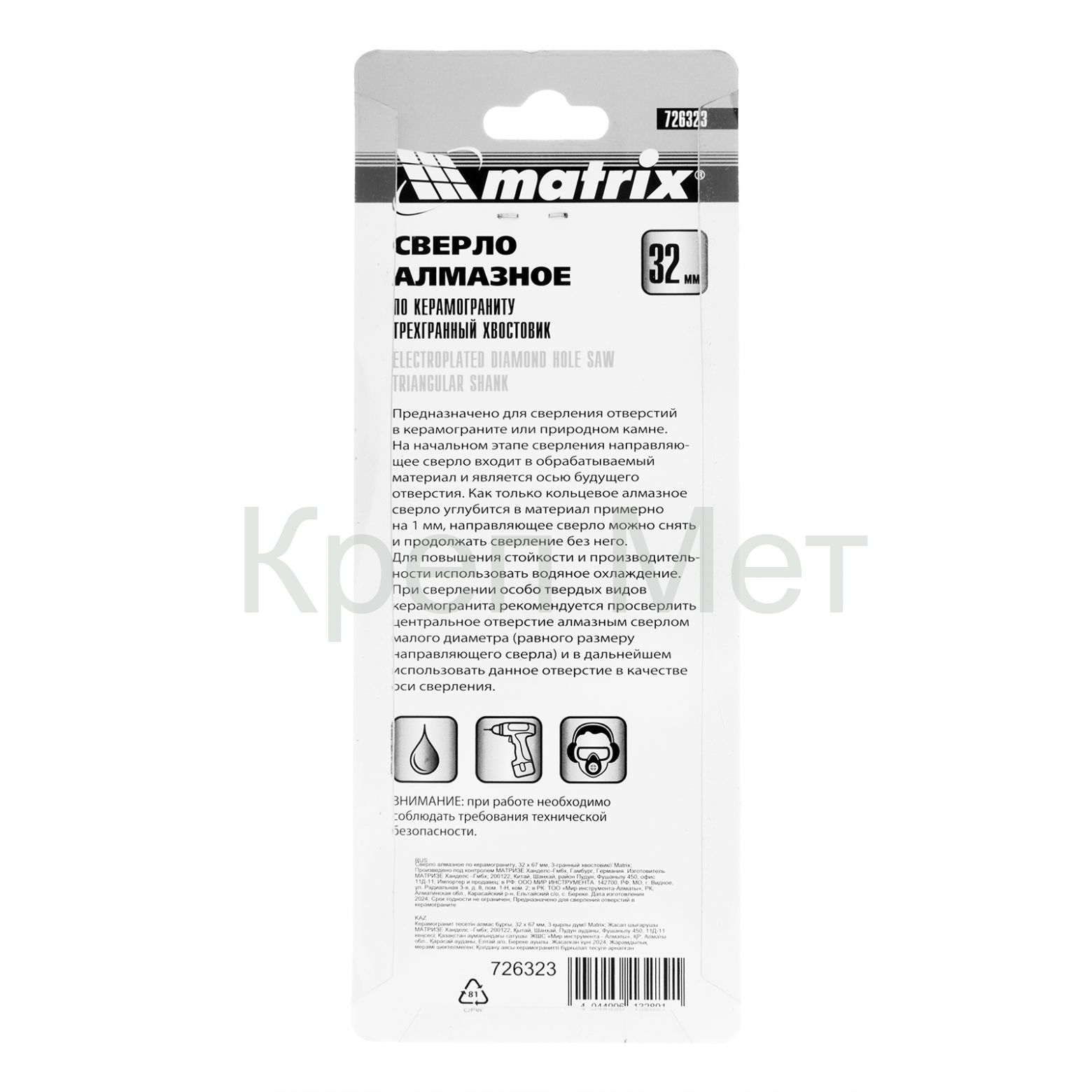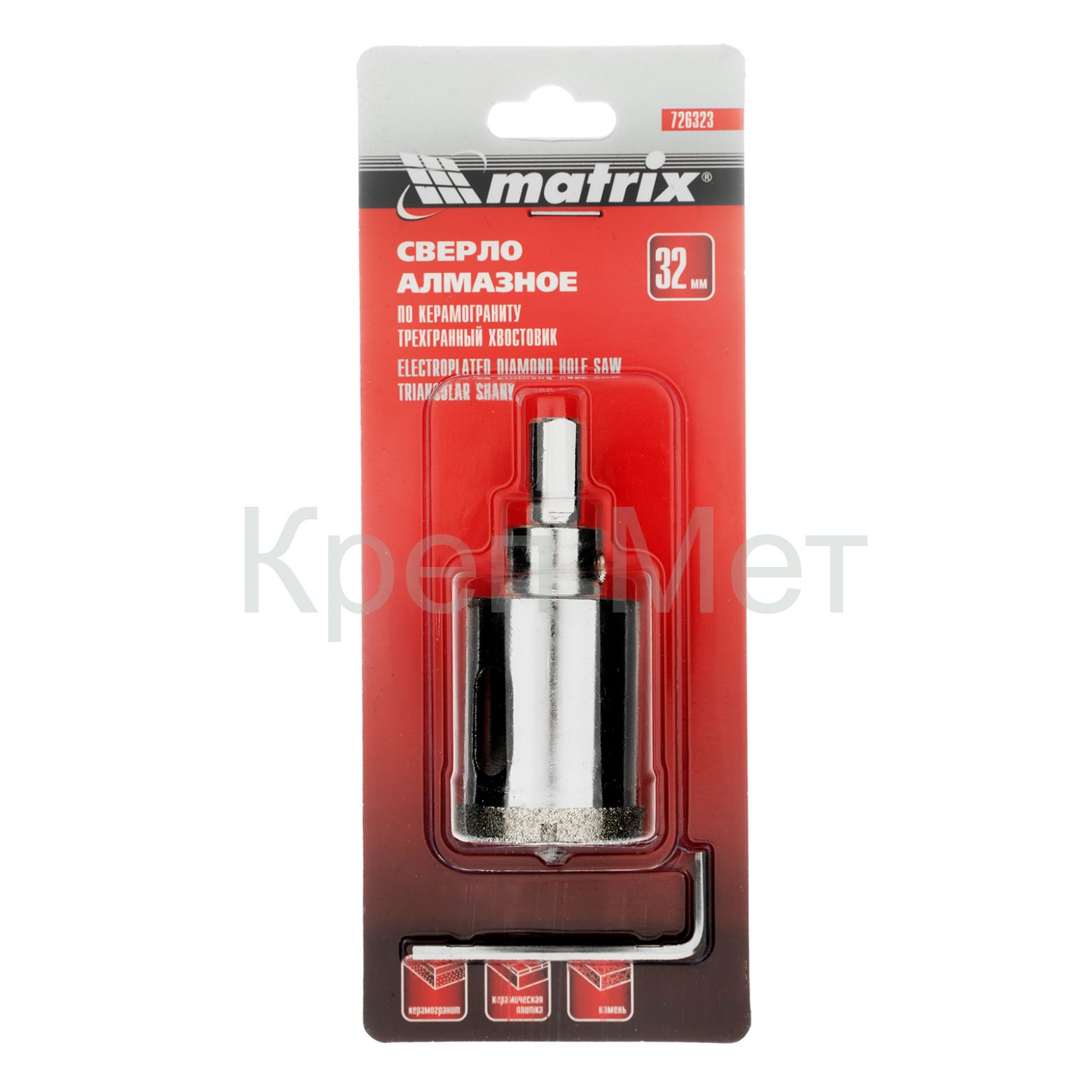 - Сверло алмазное по керамограниту, 32 х 67 мм, трехгранный хвостовик Matrix